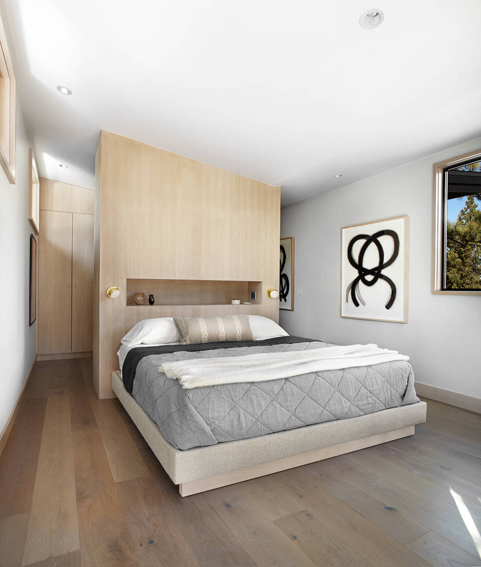 Si vous ne disposez pas d’une pièce supplémentaire pour un dressing, installez-le directement dans votre chambre ! Le principe est simple mais fait son petit effet : votre tête de lit crée un couloir avec le mur du fond de la pièce, équipé de placards sur toute la hauteur du mur.