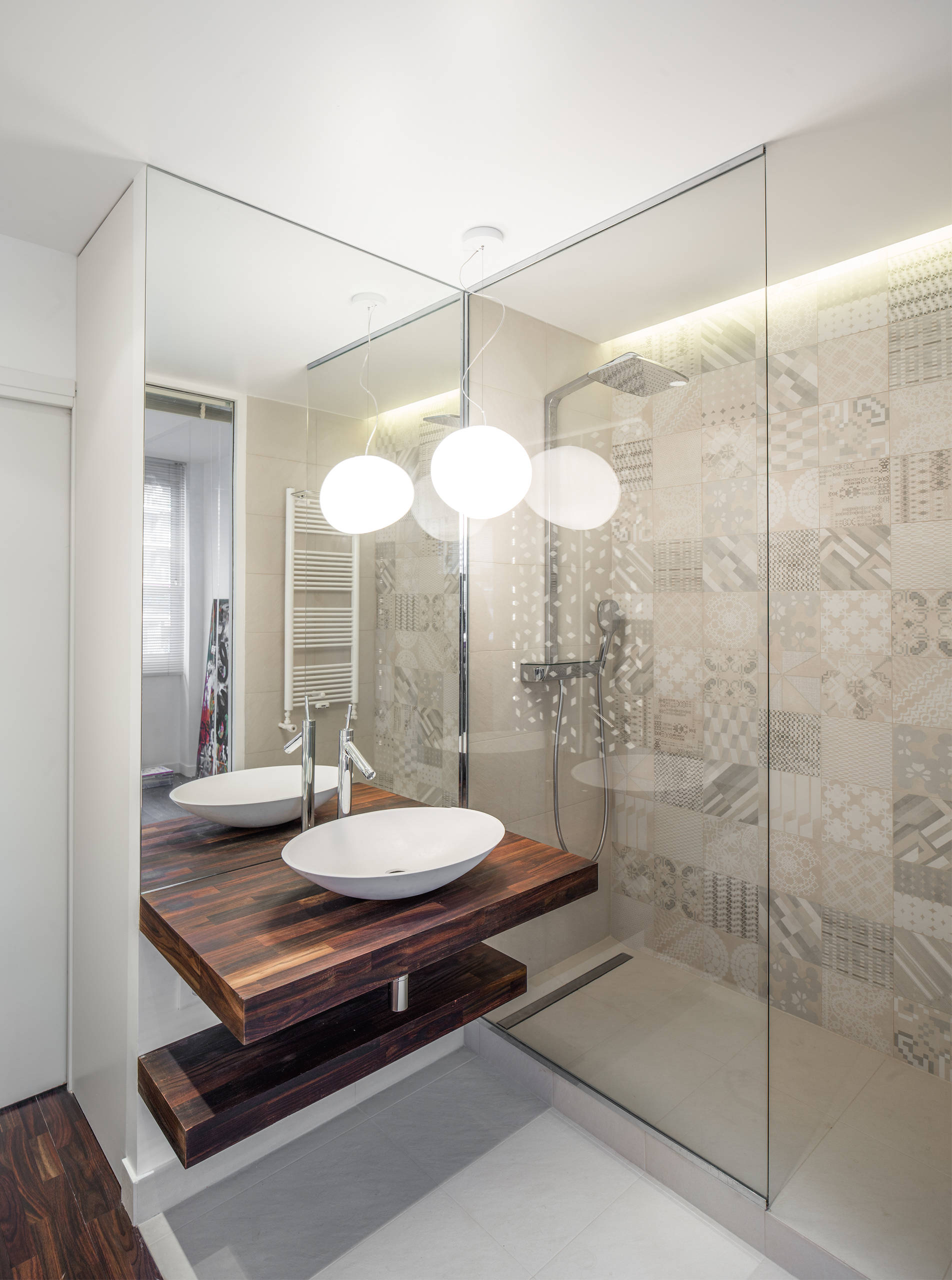 Dans cet appartement de Boulogne, « pour le meuble vasque que l’on a fait faire sur mesure, on a utilisé du palissandre, afin d’être raccord avec le parquet », expliquent les architectes Izabela Abratanska et Raphaël Philippe.