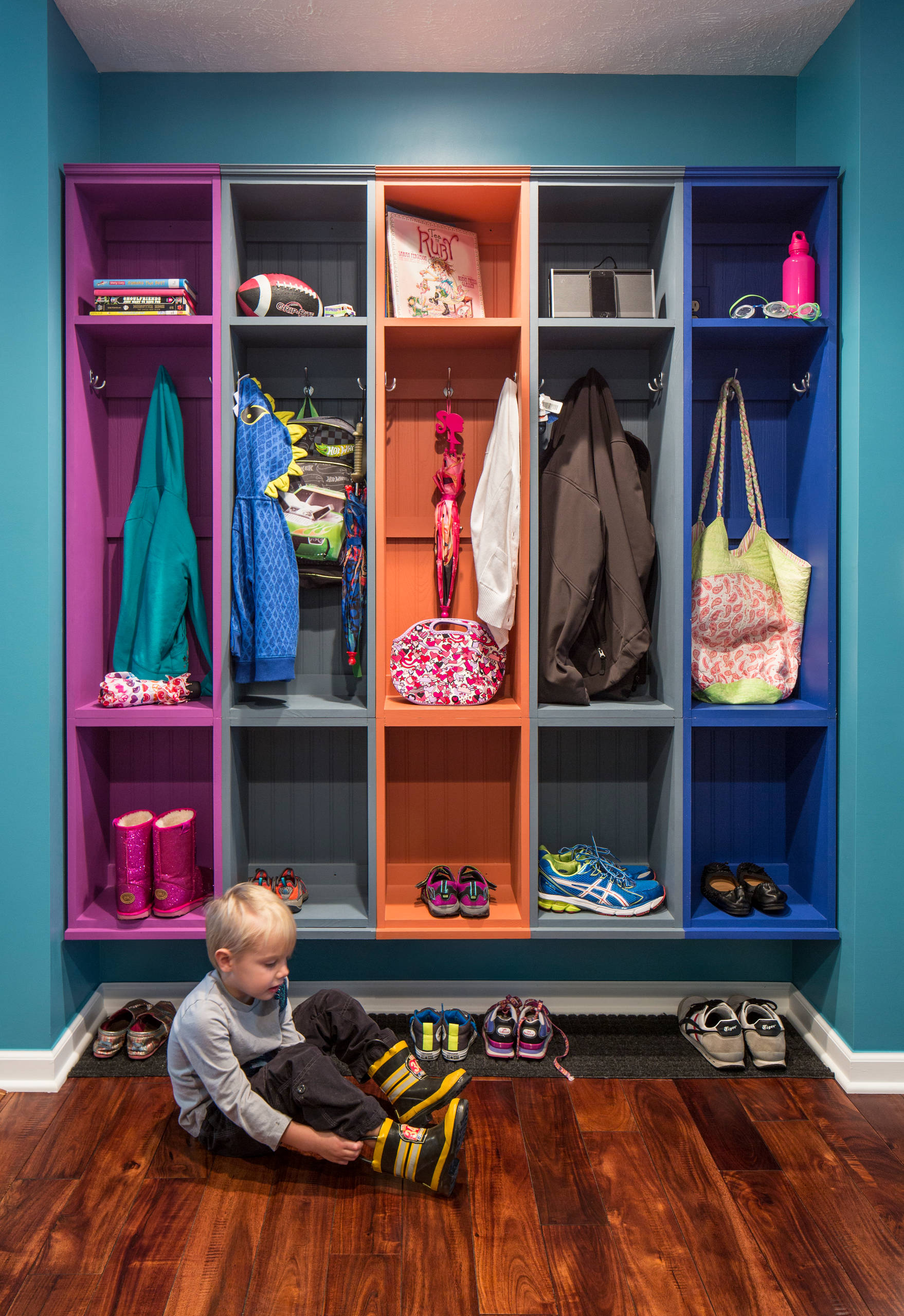Dans l’entrée de ce logement où vivent cinq personnes, ce meuble, bien adapté à ce recoin, a été peint en une couleur différente par habitant. Plus aucune affaire n’est perdue au moment de sortir !