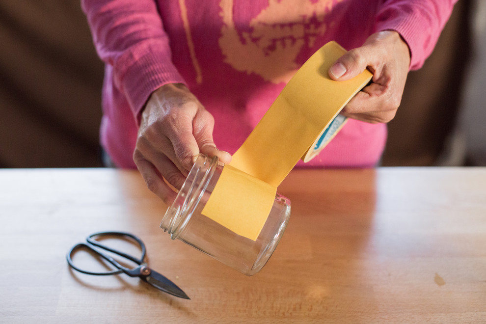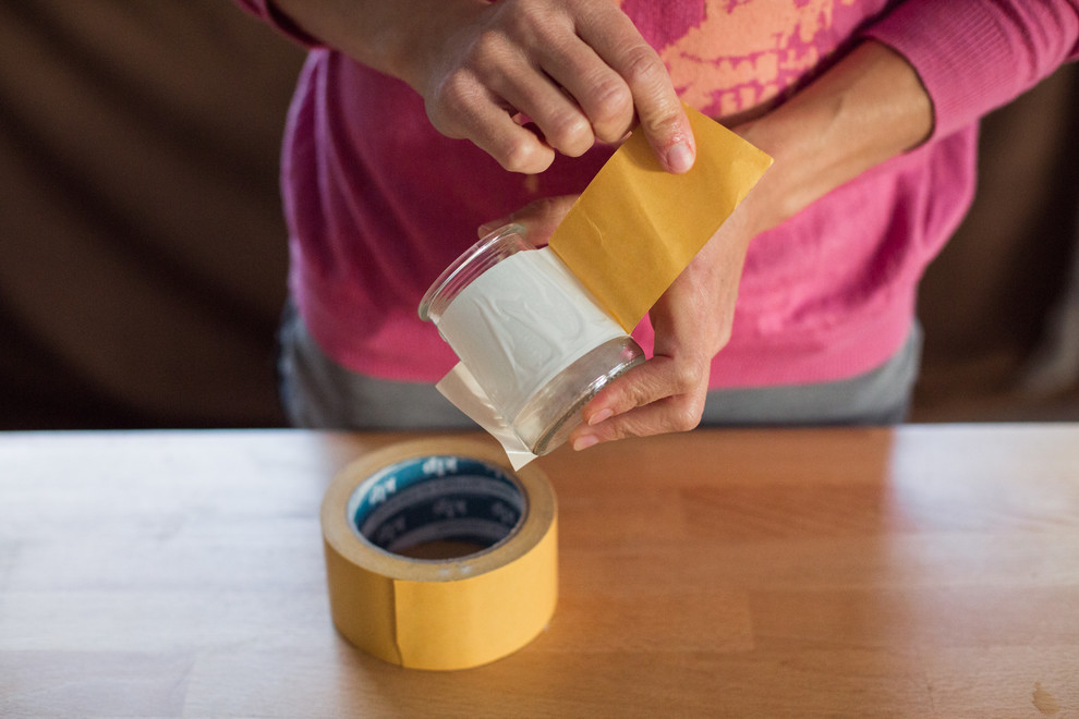 1. Commencez par recouvrir le pot de ruban adhésif double face.