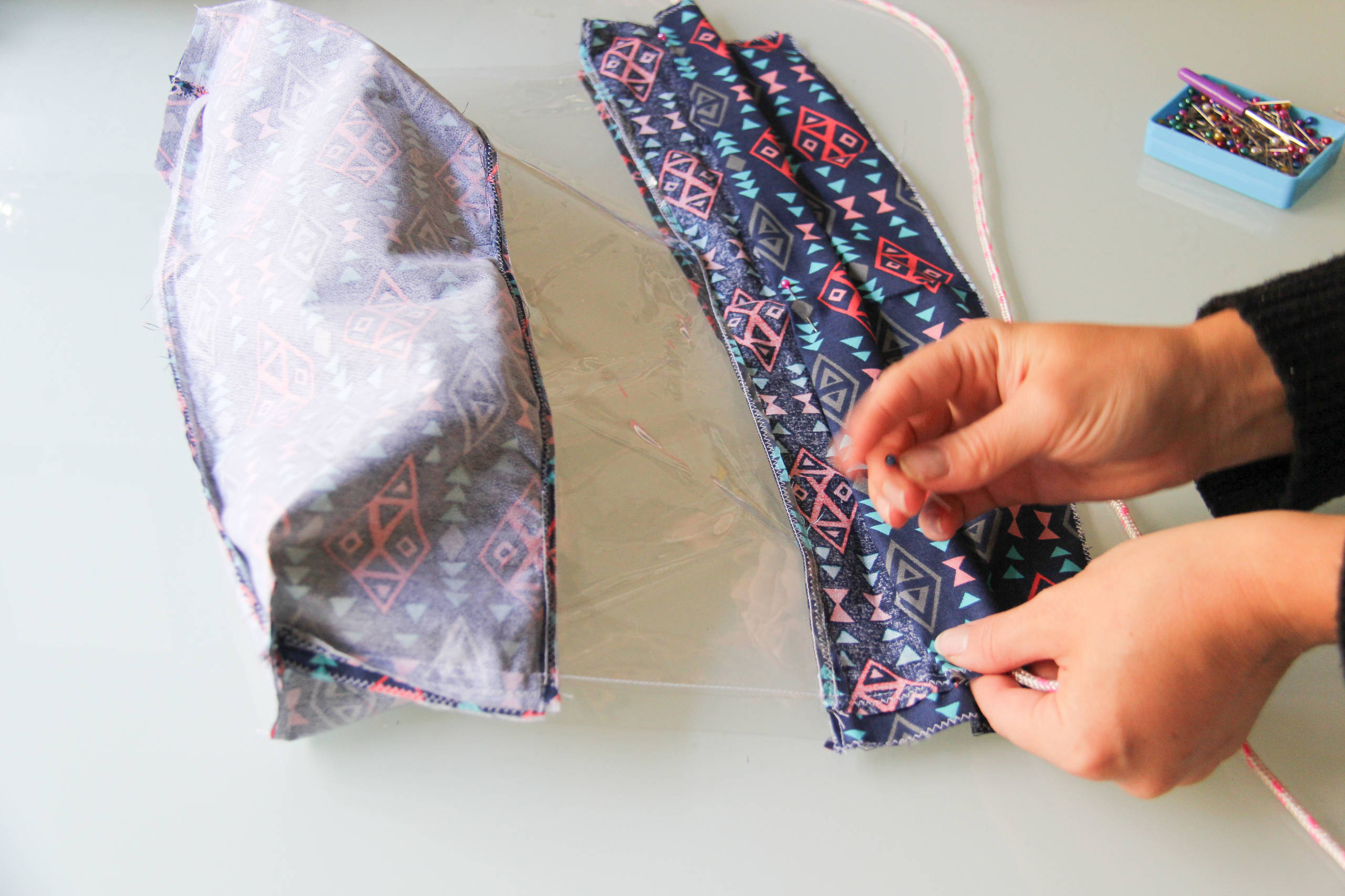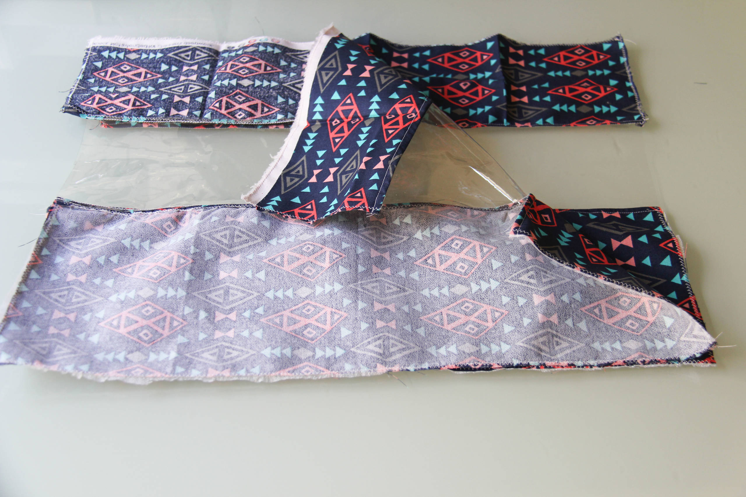 Astuce : Il est utile de disposer les tissus dans l’ordre : partie supérieure, bande de vinyle et partie inférieure.