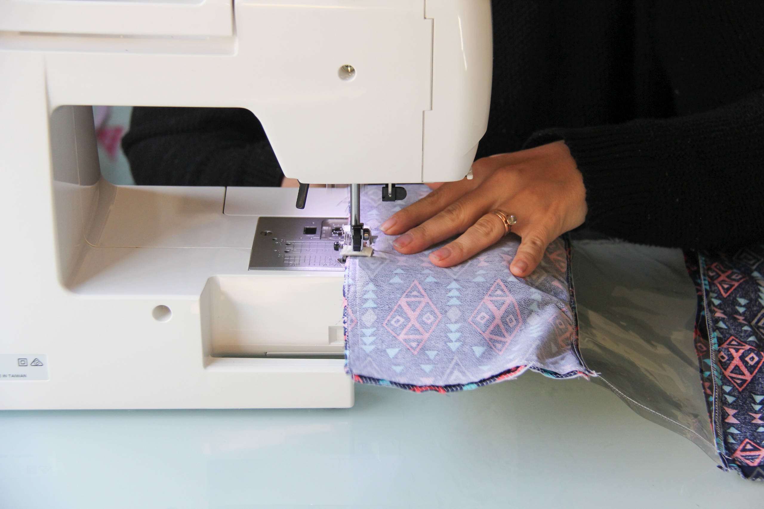 À l’aide d’une surjeteuse ou de votre machine à coudre, cousez les bordures des deux parties inférieures en mode zigzag. Cela les empêchera de s’effilocher.