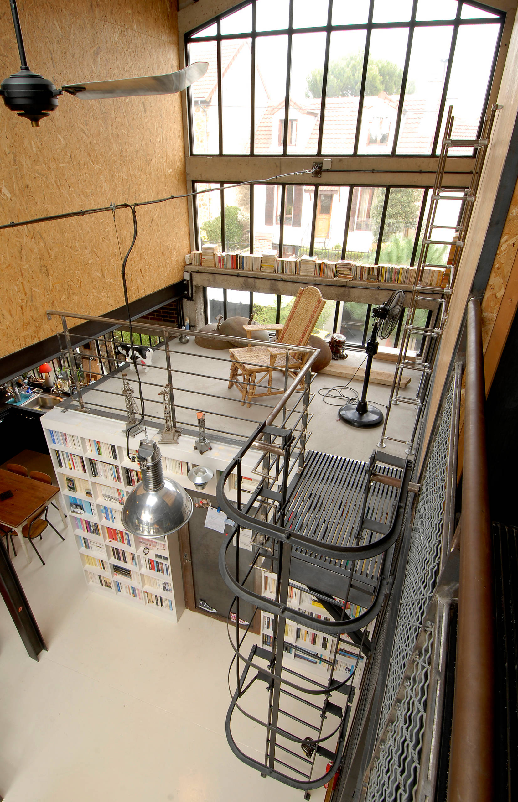 Les plaques d’OSB ont également fait leurs preuves dans les travaux d’aménagement de plus grande envergure. Disponible en grande taille, elles offrent une bonne isolation thermique et phonique et sont couramment utilisées pour les contreventements, les planchers, les solives et le cloisonnement. Dans cette rénovation d’usine, les pans de particules délimitent les quatre chambres du loft. À noter, la belle association entre style industriel et bois compressé.