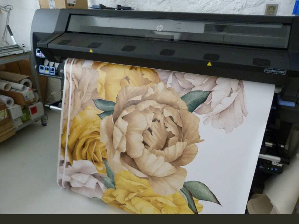 L’impression numérique permet également de réaliser des séries réduites à moindre coût par rapport l’héliogravure (qui requiert de graver des cylindres de cuivre). Et ce, pour le plus grand bonheur des créateurs, graphistes ou décorateurs, qui peuvent se lancer dans la microédition de papiers peints et proposer des décors originaux. On pense par exemple à la série de Jean-Paul Goude pour l’éditeur The Mark on the Wall (photo ci-dessus).