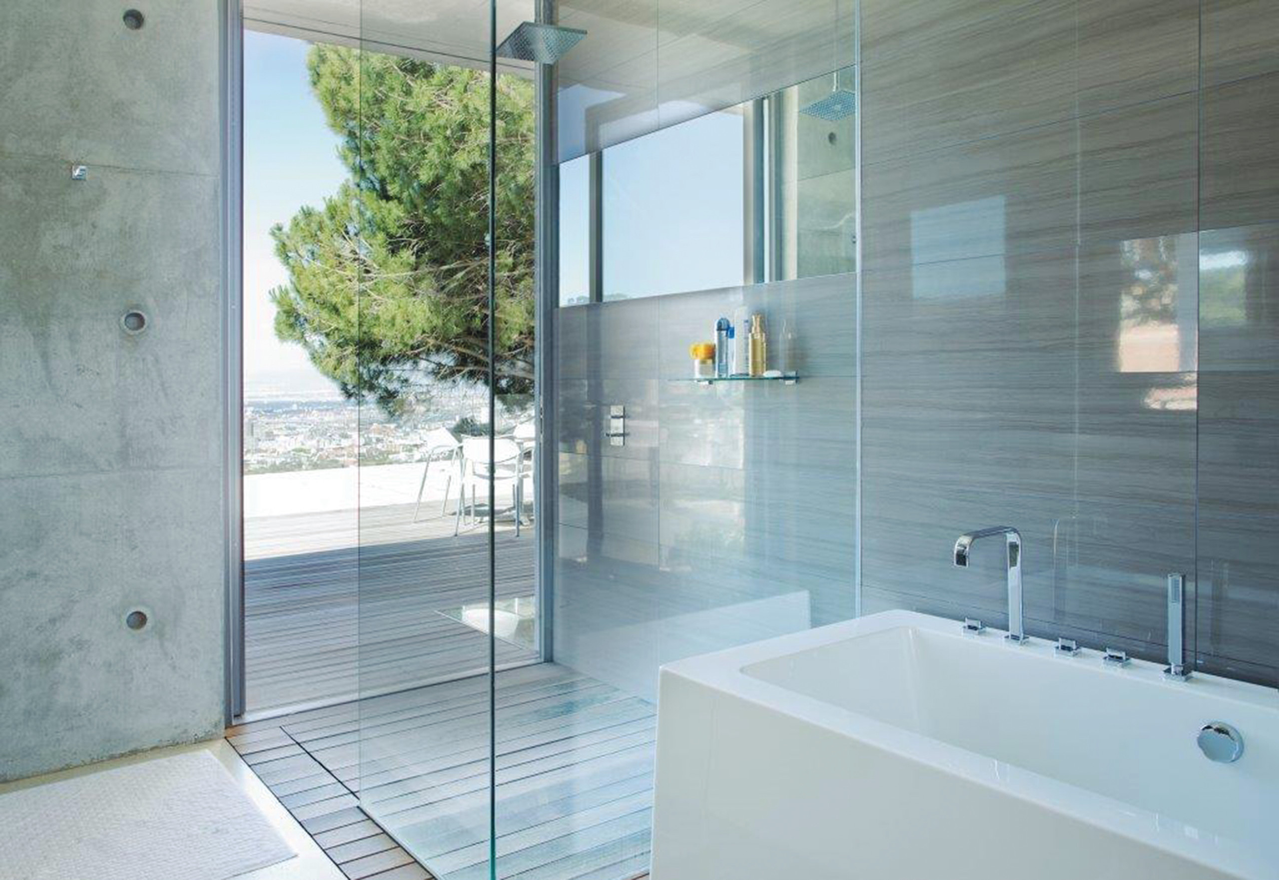 Autre verre à préconiser cette fois en salle de bains, Timeless apporte quant à lui sa petite révolution dans la douche : « À force d’asperger le verre, comme dans un lave-vaisselle, l’eau le corrode et l’abîme définitivement. La couche Timeless obtenue grâce à un dépôt sous vide d’oxydes métalliques à sa surface évite cette dégradation avec une garantie de dix ans. La plupart des parois de douche sont traitées avec des surcouches anticalcaires, qui ne traitent pas le problème de corrosion et sont inefficaces dans la durée. Certaines disparaissent même après un mois d’usage ! »