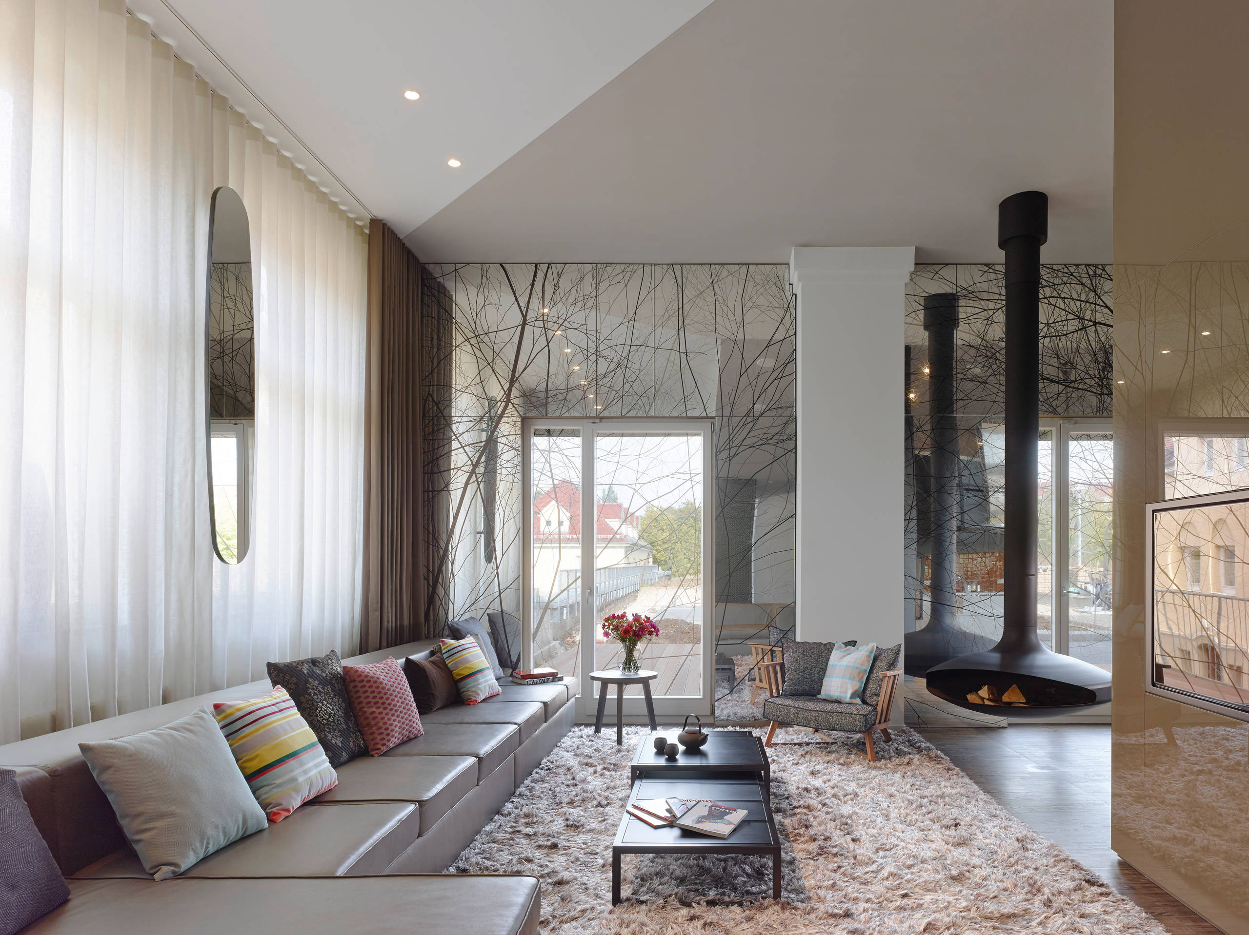 Dans ce loft de Stuttgart en Allemagne, des plaques de verre miroir à motif ont été posées en applique autour des fenêtres afin d’élargir l’espace et de donner une sensation d’extérieur en intérieur. La pose d’émaux recuits à haute température est une autre façon de décorer le verre qui permet d’appliquer de façon inaltérable des motifs, des photos ou du texte sur toutes les variétés de vitrages, en blanc ou couleur. « La personnalisation n’a guère de limite et nous pouvons étudier tout type de projets sur mesure », affirme notre expert.