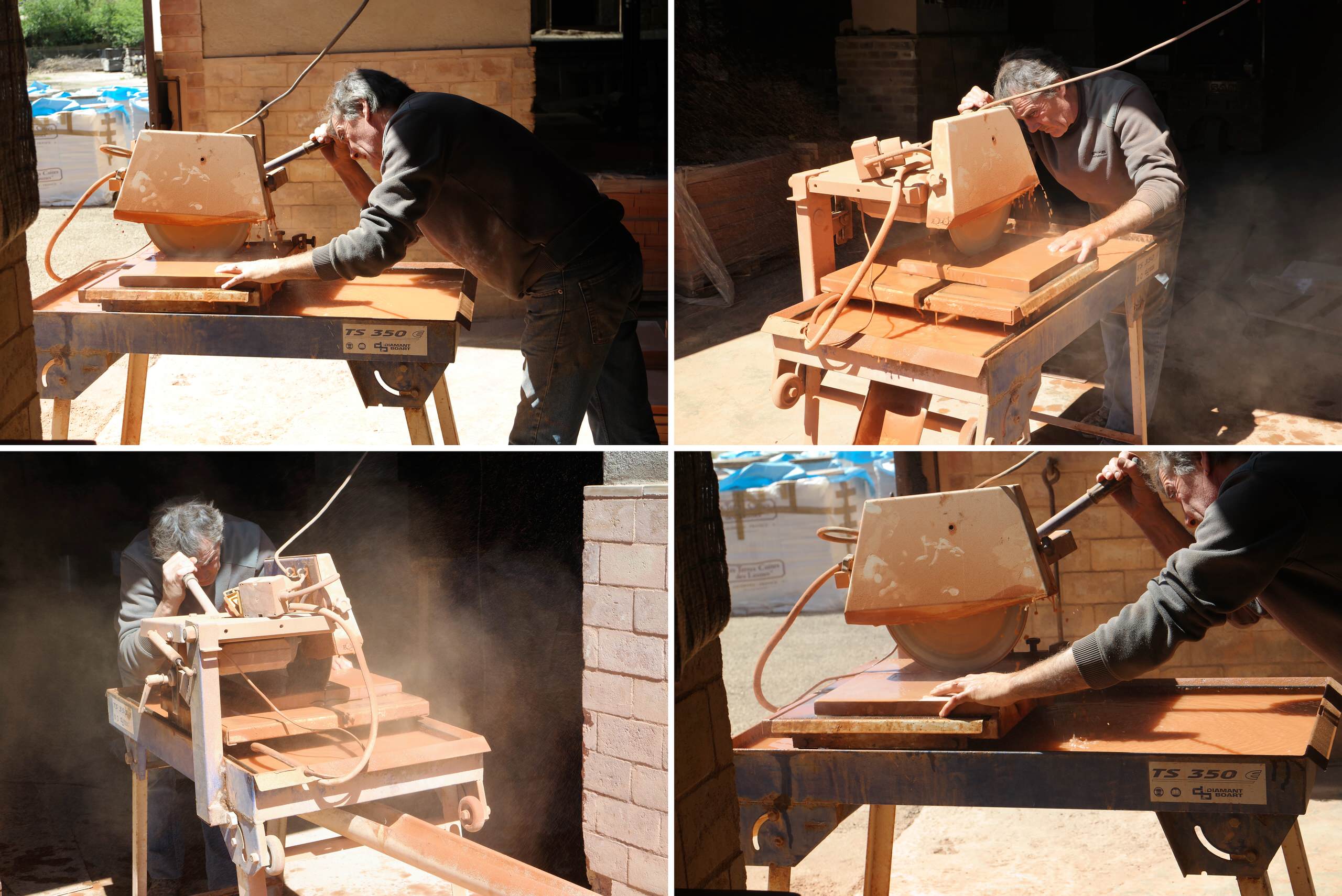 La finition des revêtements en terre cuite peut aussi varier, de lisse à « peu cendrée » ou « cendrée » en fonction d’une étape artisanale de la fabrication qui intervient avant le séchage. Une petite main saupoudre la terre moulée avec de la poudre de lavande pour un rendu plus ou moins granuleux en surface.