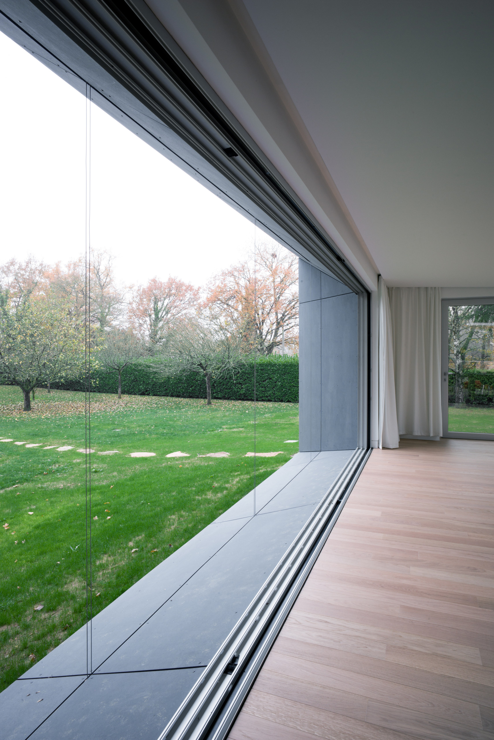 Bon nombre de vitrages que nous vous avons présentés gagnent en qualité au moyen d’une surcouche déposée à leur surface ou encore par un feuilletage. D’autres vitrages acquièrent quant à eux les leurs lorsqu’ils sont traversés par un courant électrique. Ceux-ci sont appelés vitrages actifs, à l’instar du verre chauffant encastré dans le cadre aluminium de cette baie vitrée de 6 x 2,70 mètres.