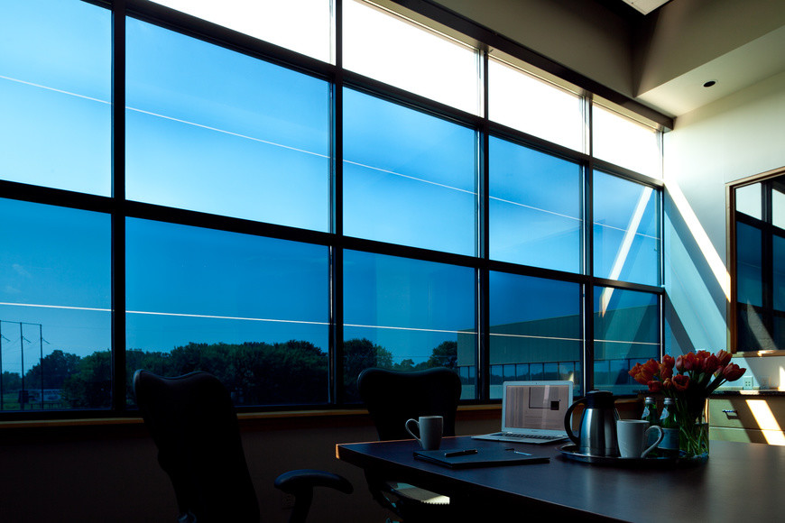 Nous ne pouvons clore ce dossier sans évoquer ce verre qui a demandé 25 ans de R&D et plus de 500 brevets afin de rendre caducs les volets, stores et autres rideaux. Le vitrage dynamique Sageglass change de teinte au passage d’un courant électrique.