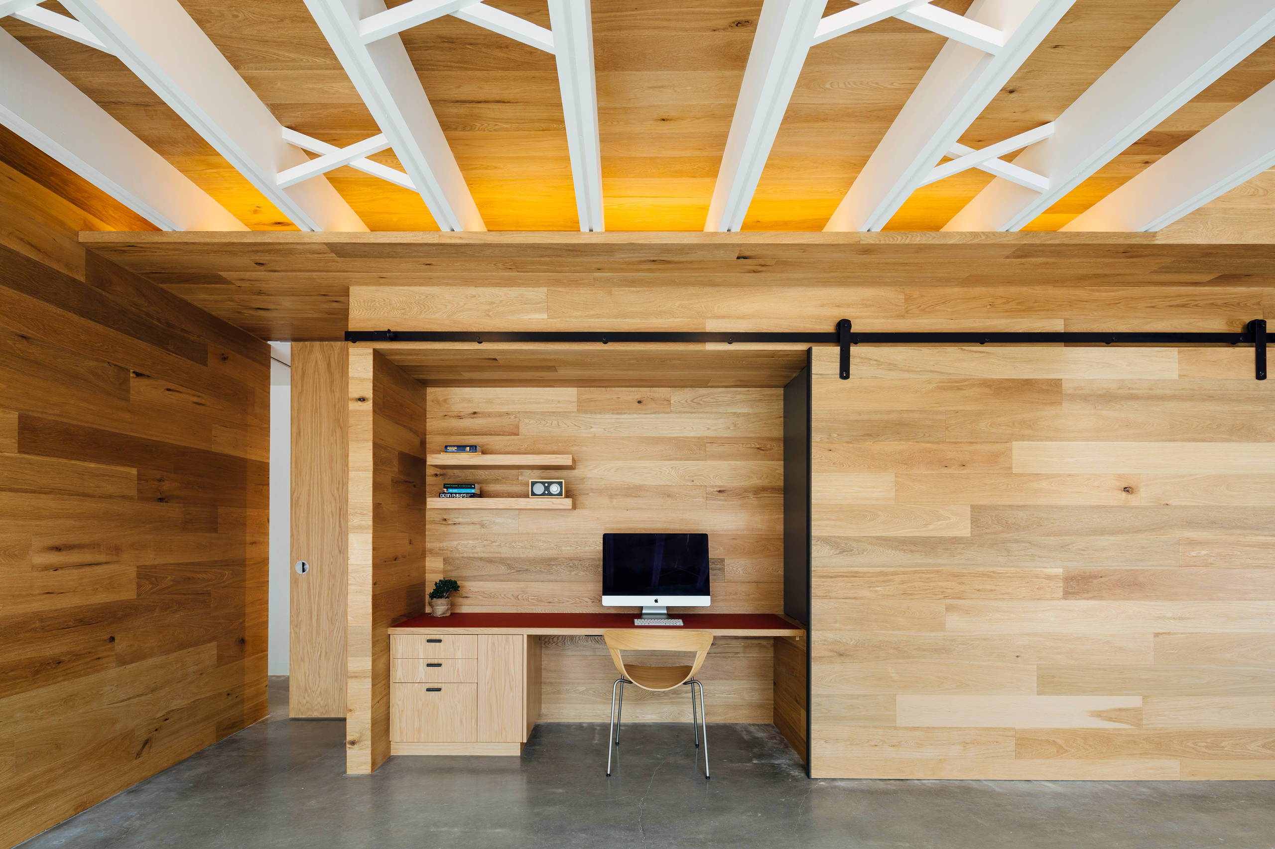Pensez également à la solution des portes coulissantes, qui peuvent faire disparaître entièrement votre espace de travail lorsqu’il est aménagé dans une alcôve.