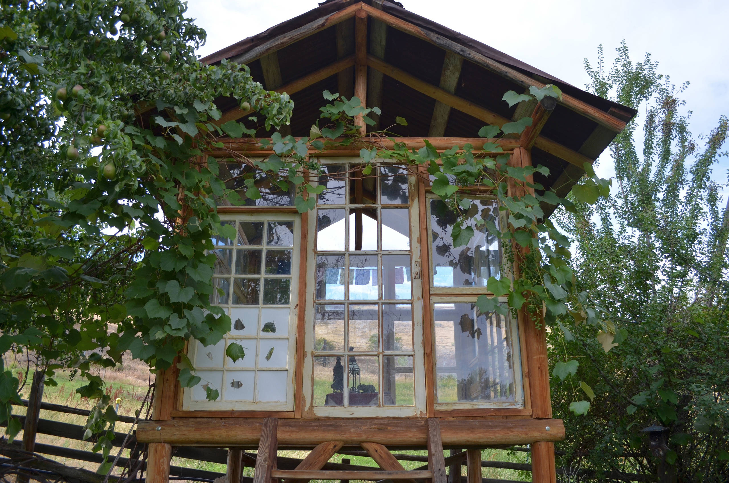 Pour les plus bricolos, la cabane en bois composée essentiellement d’anciennes fenêtres et baies vitrées, c’est le top ! J’ajouterai : même s’il manque quelques petits carreaux, pour un côté maison abandonnée !