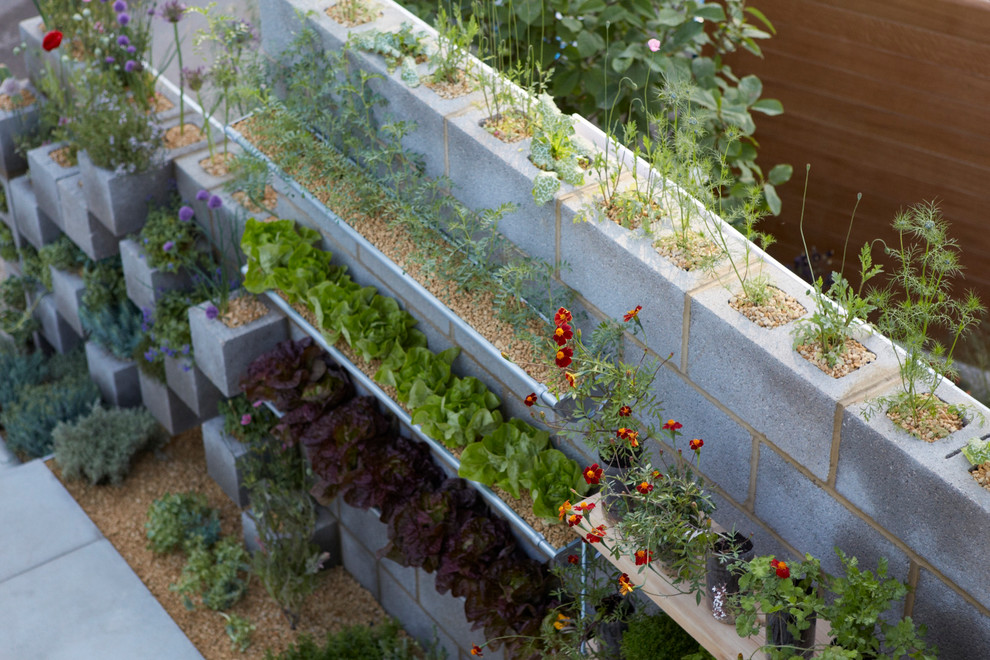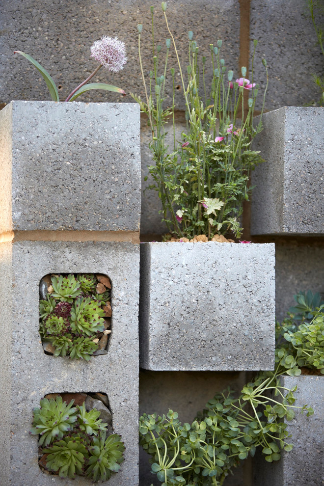 À l’horizontal comme à la verticale, cette maxi-jardinière et petit potager inclus surprend par son ingéniosité. Il s’agit de blocs de parpaings creux et d’éléments de pilier en béton de forme carrée. Du matériau de construction à la création design et astucieuse, vous concevrez un mur de verdure, bien exposé, tel que souhaité. Quelques coups de truelle, de sable et de ciment sont toutefois nécessaires pour l’ériger durablement.