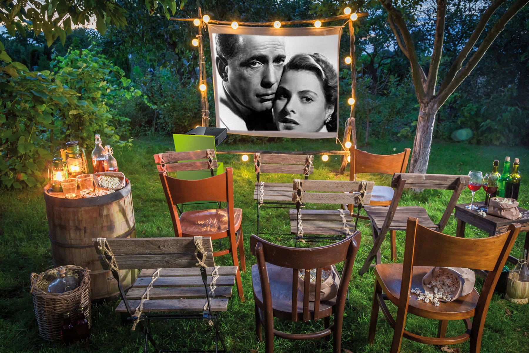 Envie de soirées d’été en « garden cinéma » pour changer du home cinéma ? Hormis le projecteur à acquérir, toute la salle de projection outdoor peut être conçue en récup. Ainsi chaises dépareillées et vieux barils en mange-debout accompagneront un écran fait maison : une bâche épaisse et imperméable tendue par cordes sur un montant en bois. Quelques lampions pour les entractes seront bienvenus.
