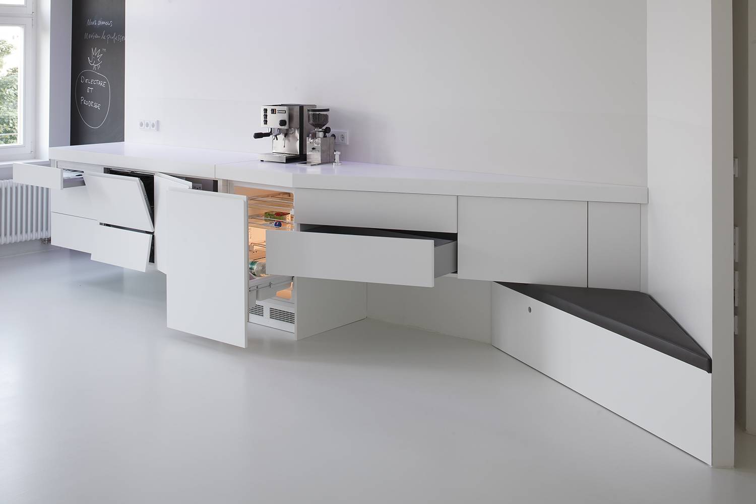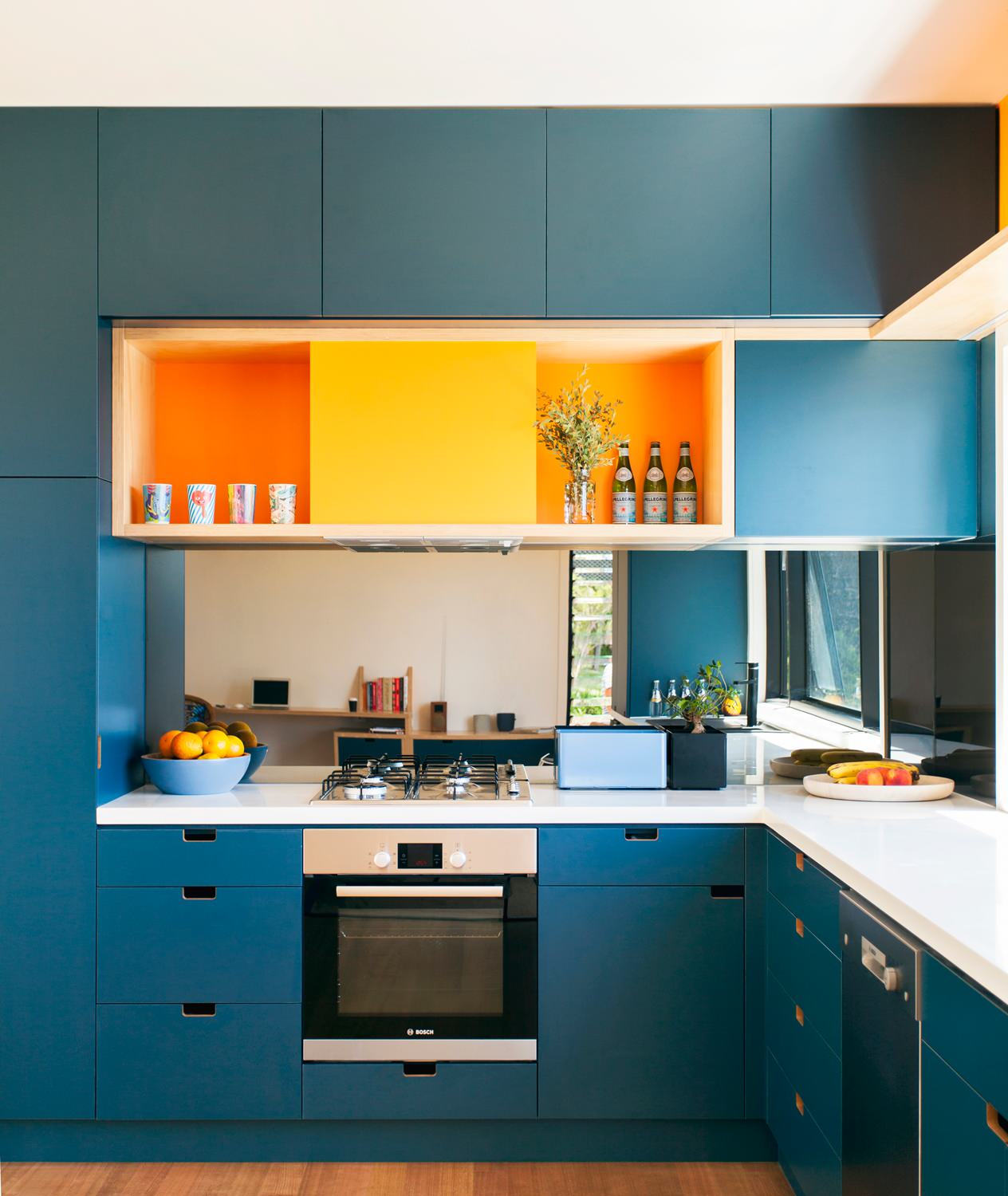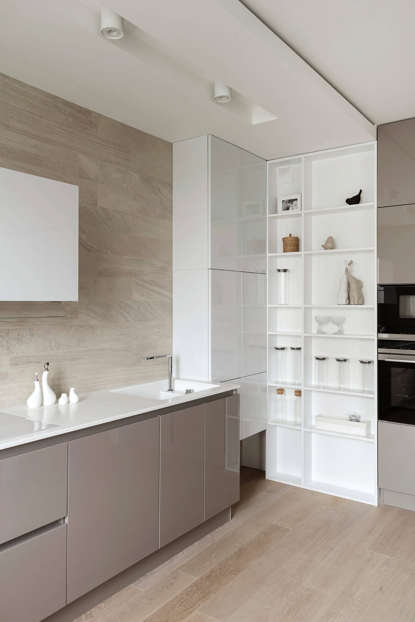 На фото: в этом проекте газовая колонка спрятана не в угловом шкафу, а в обычном, но суть та же — догадаться о ее существовании практически невозможно