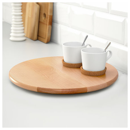 Идея: Если шкаф-трапеция у вас уже есть, а карусели в нём нет, поставьте на полки крутящиеся сервировочные подносы «Снуда» из IKEA. Диаметр подносов — 39 см, вполне подходящий для полноразмерных угловых шкафов.