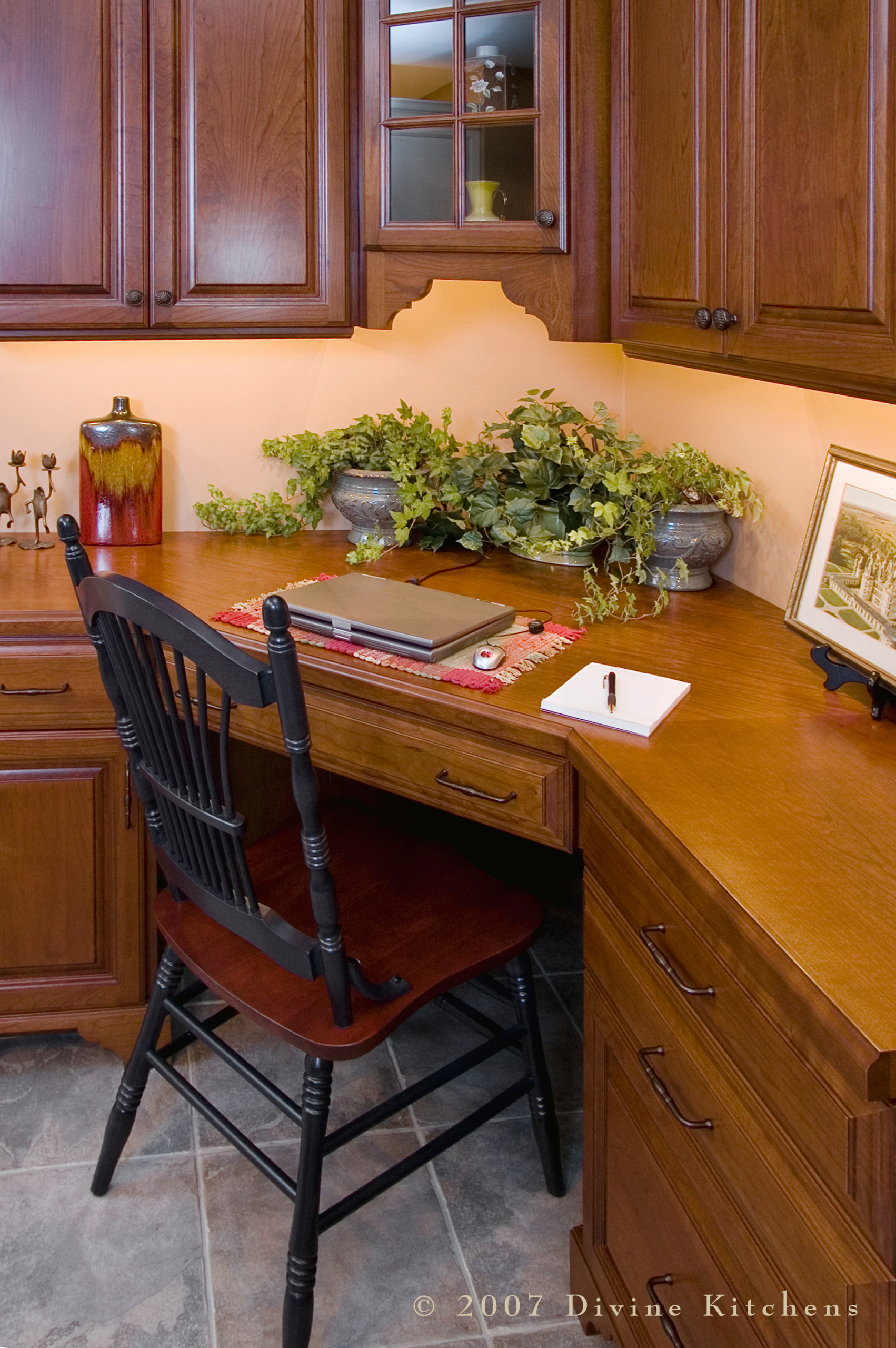 Кстати, угол кухни, если не ставить в него нижний шкаф, может с успехом заменить личный рабочий уголок — особенно если квартира маленькая, и другого места просто нет. Здесь можно удобно расположиться с ноутбуком или позавтракать в одиночестве.