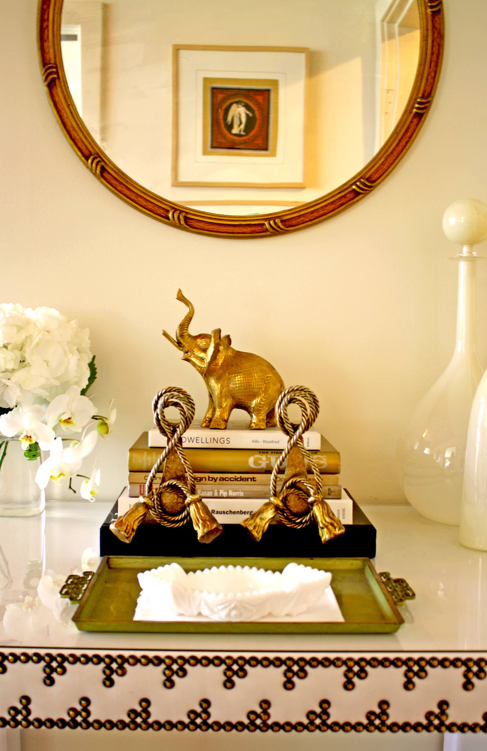 Le cuivre et ses dérivés dorés sont au cœur de la tendance. En la matière, osez un peu d’originalité : un éléphant doré est parfait pour donner du peps à votre décoration. Et, en plus d’être décoratif, il est aussi utile, employé comme serre-livres par exemple. Vous pouvez poser un éléphant (de préférence une statuette en métal un peu lourde) sur une pile de livres, ou deux éléphants pour serrer une rangée de bouquins branlante dans une bibliothèque.