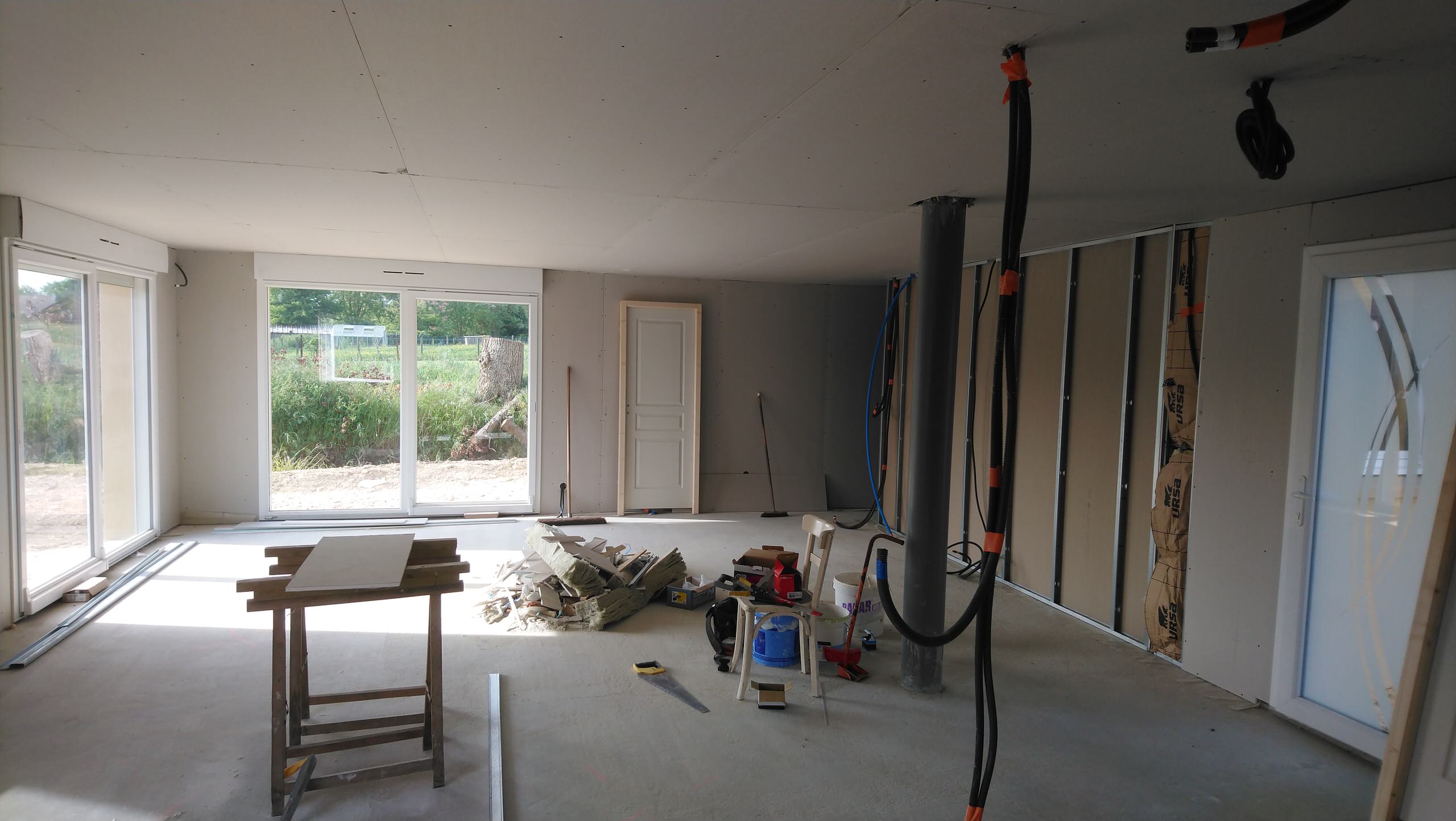 - Isolation des murs (intérieurs, extérieurs et rampants) et des sols en sous-face et changement des menuiseries pour limiter drastiquement les déperditions de chaleur. C’est notamment par la toiture que s’échappe le plus de chaleur.