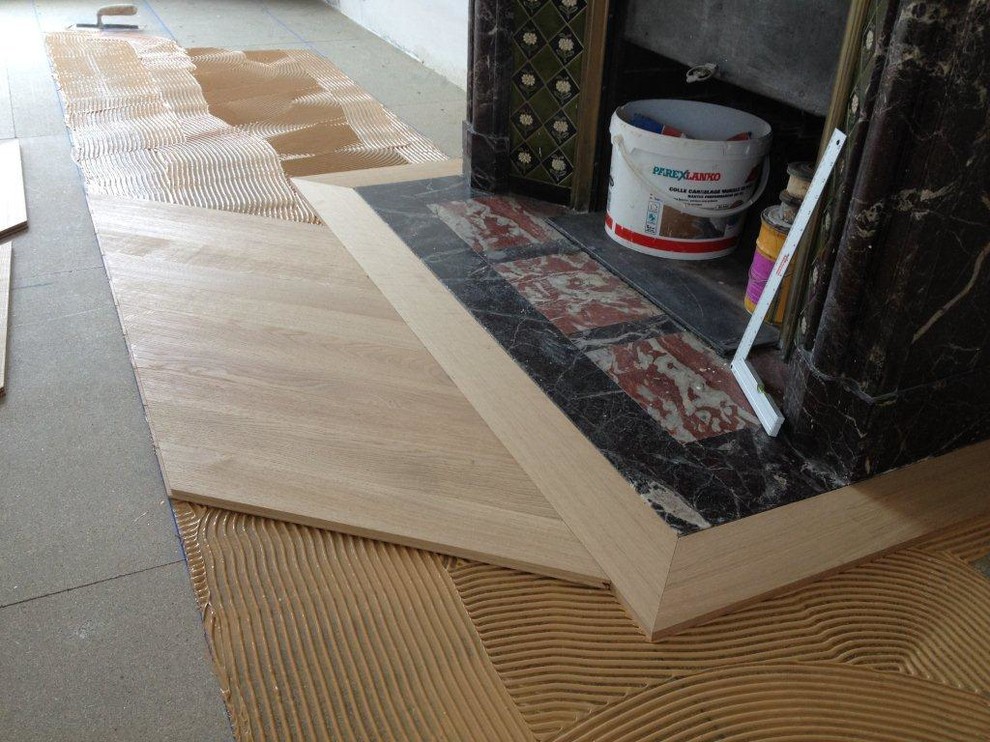 Dans les plus anciennes demeures, le parquet Versailles était assemblé sur place. Ses fines lames sont alors clouées une à une, tel un tissage de bois. Parmi les autres motifs plus rares, on trouvera aussi les parquets à damier, en diamant, en échelle, de style vannerie, en forme de fougère ou avec un motif particulier intégré en marqueterie (une boussole, une rose des sables, etc).