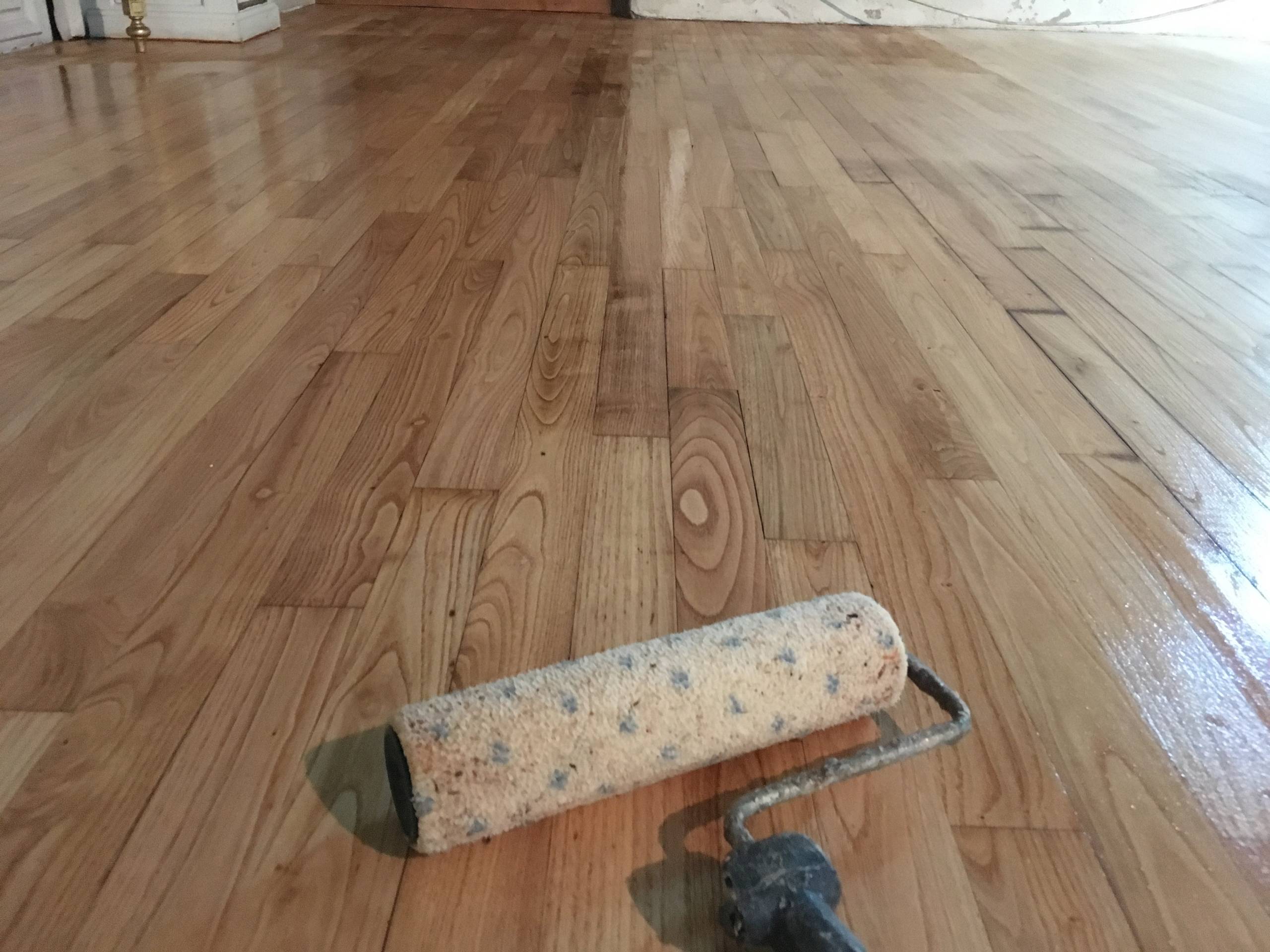 Le parquet vitrifié. En rénovation (après ponçage pour la mise à blanc du bois) ou lors d’une pose de parquet neuf, un fond dur est appliqué sur le bois naturel pour éviter les éventuelles remontées de tanin, boucher les pores. Puis 2 à 3 couches fines de vitrificateur sont posées au rouleau à environ deux heures d’intervalle. Le bois est ainsi protégé par ce revêtement, sans que la finition ne le pénètre comme pour l’huile ou la cire. Sa rénovation sera donc plus facile dans quelques années.