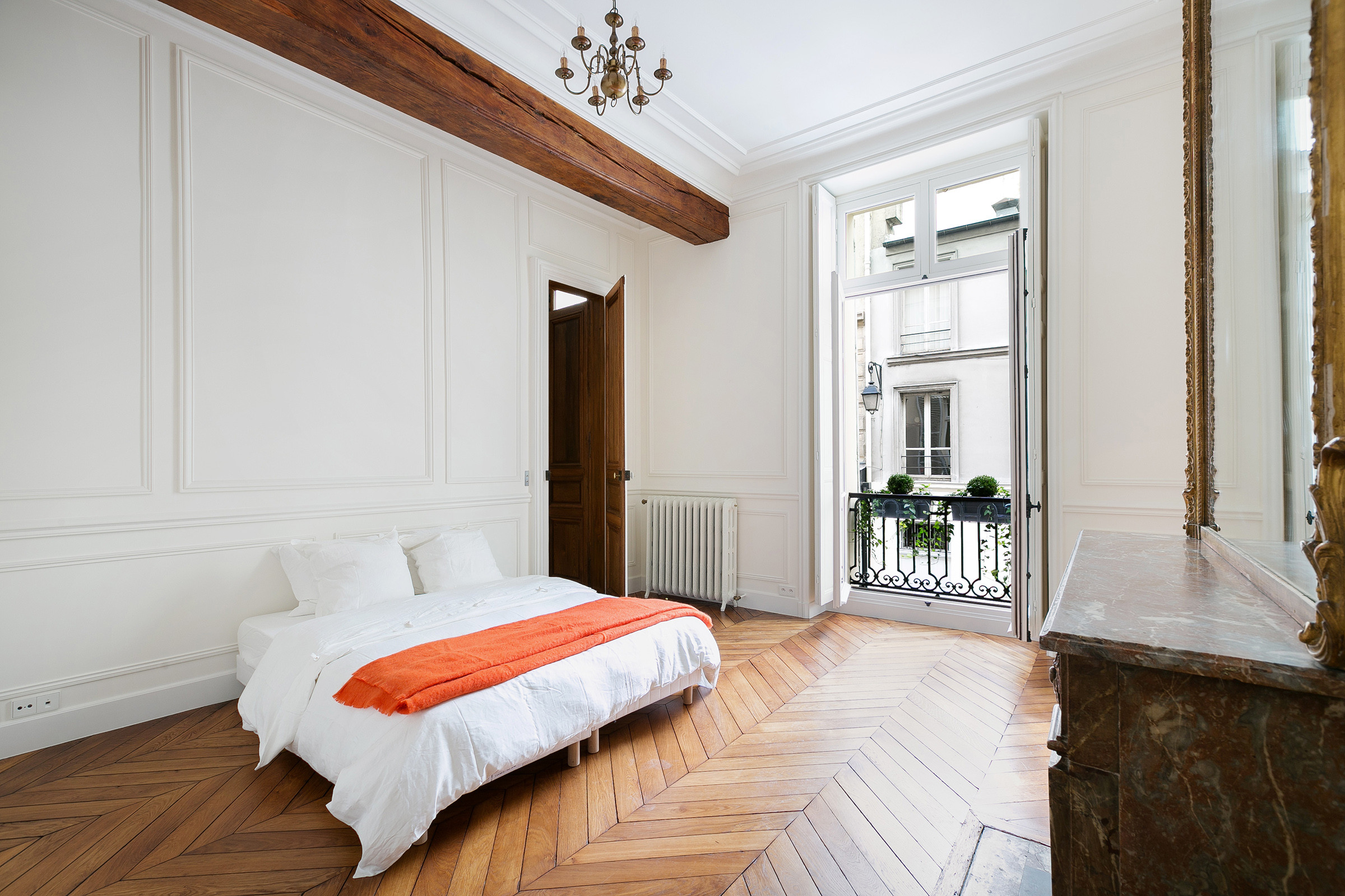 Petites lames, bel effet visuel. Le parquet ancien se distingue du simple plancher par de plus fines lames, en largeur comme en longueur. Assemblées différemment, soit en parallèle, soit en croisement, elles offrent un merveilleux effet visuel, comme ici, en point de Hongrie. Cet effet ajoute du charme dans les immeubles haussmanniens de plusieurs grandes villes.