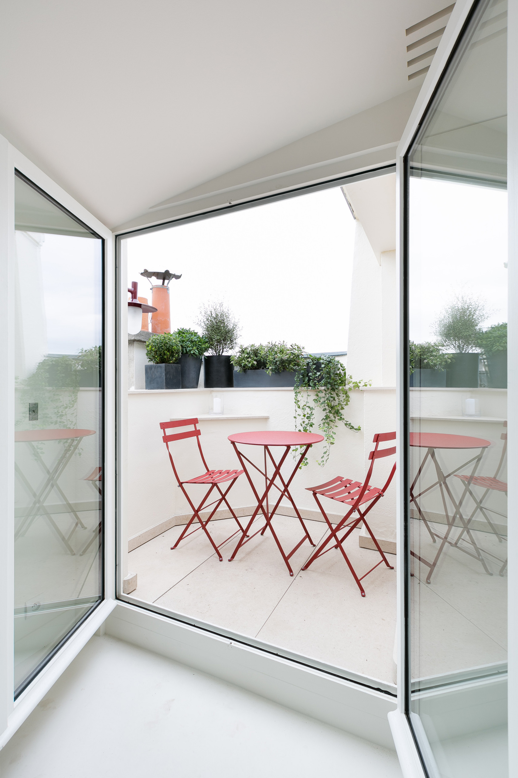 Le rouge peut aussi nous faire de petits clins d’œil de l’extérieur. Si, à l’intérieur de la maison, il est difficile de l’inviter, ou si on n’ose pas, il peut nous faire signe depuis le balcon ou la terrasse. Vous pouvez opter pour du mobilier de jardin rouge : une table, deux chaises, et le rouge est mis. Autre possibilité : une simple jardinière ou un joli pot dans lequel vous disposez une belle plante. Cette plante peut donner des fleurs rouges (le géranium est facile à entretenir), et alors l’harmonie est parfaite ! Le rouge se fait alors sage.