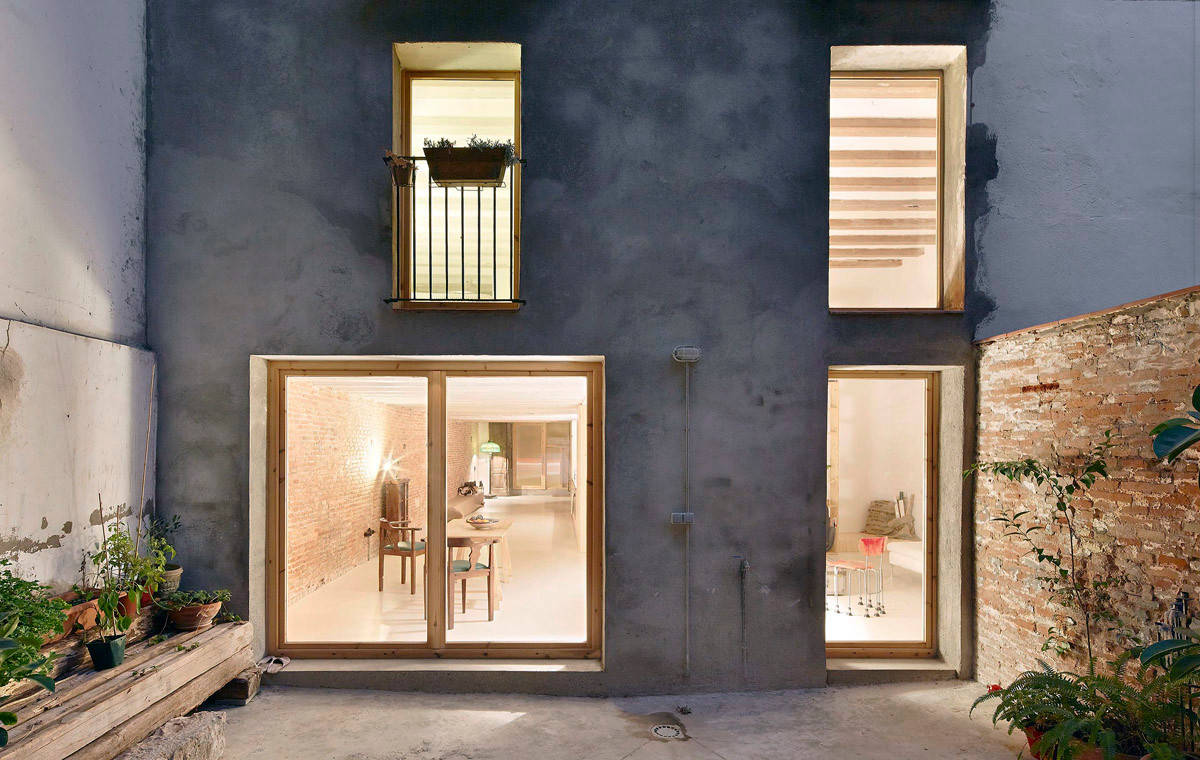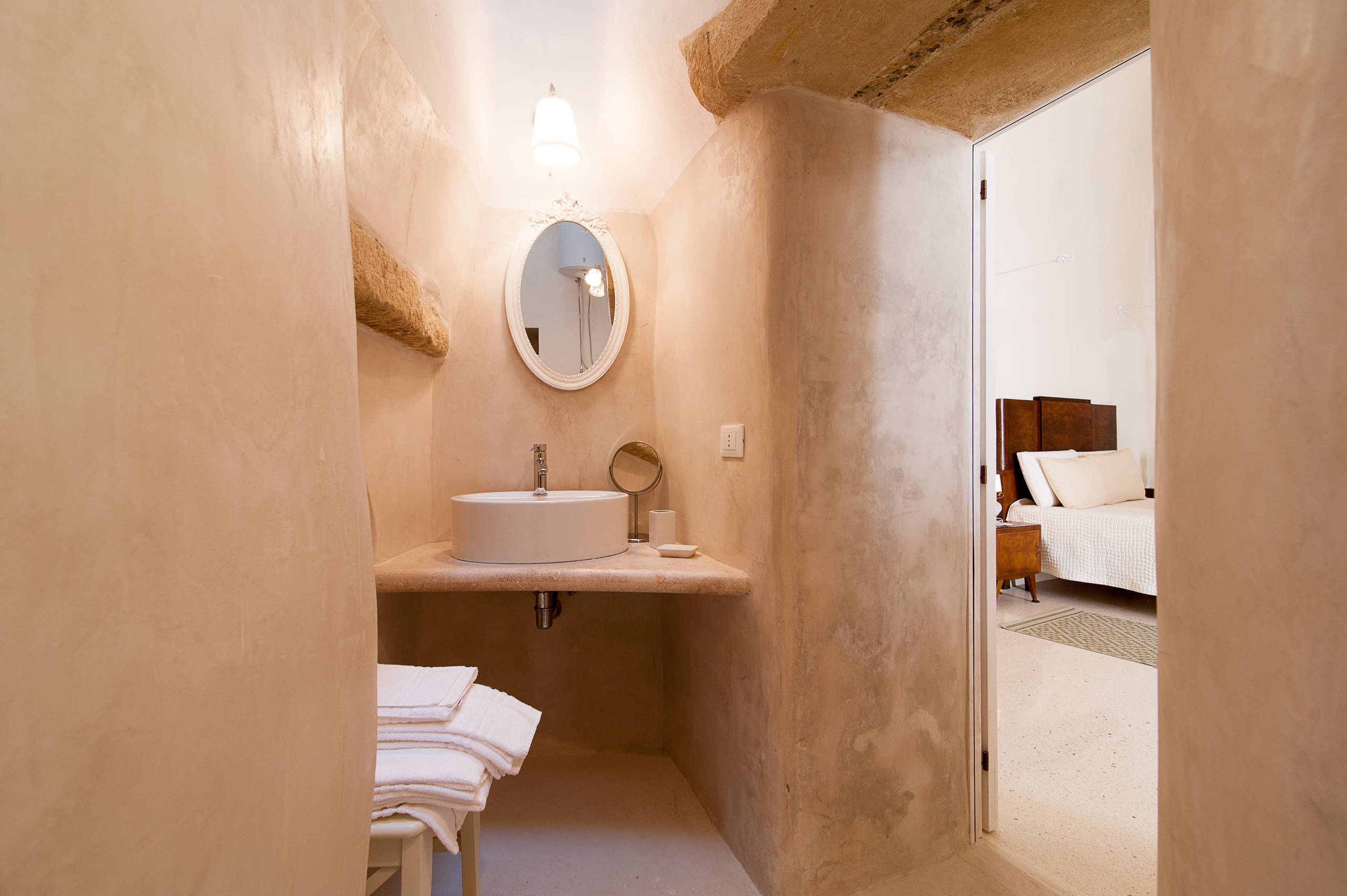 L’enduit à la chaux ne s’applique pas seulement sur les murs en pierre, mais aussi sur du ciment, des briques non traités, de la terre cuite ou crue (pisé, torchis). Sur des plaques de plâtre, une primaire sera appliquée. Sur des pierres friables, un fixateur sera appliqué au préalable. Dans cette extension en briques, l’enduit décoratif est dit en tadelakt. Cet enduit à la chaux répandu au Maroc associe chaux, poudre de roche (argile, silice, quartz et autres minéraux) mais est obtenu avec une cuisson différente. On obtient un enduit qui n’est ni de la catégorie chaux hydraulique, ni aérienne mais un peu des deux.