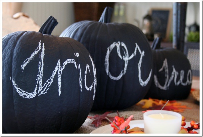 Vous pouvez même détourner la peinture ardoise de vos murs pour en recouvrir vos citrouilles. Chaque membre de la famille pourra ainsi personnaliser la sienne sans risque de se blesser.