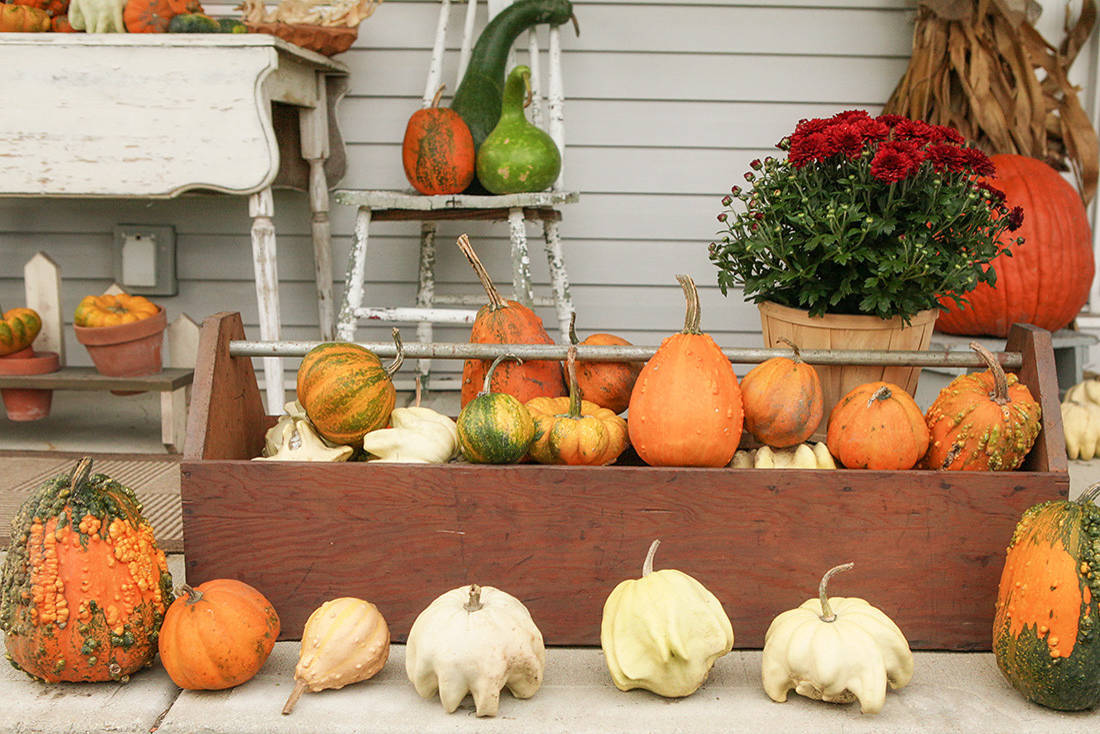 Soit en vous en tenant à une (plus) charmante accumulation de citrouilles et potirons.