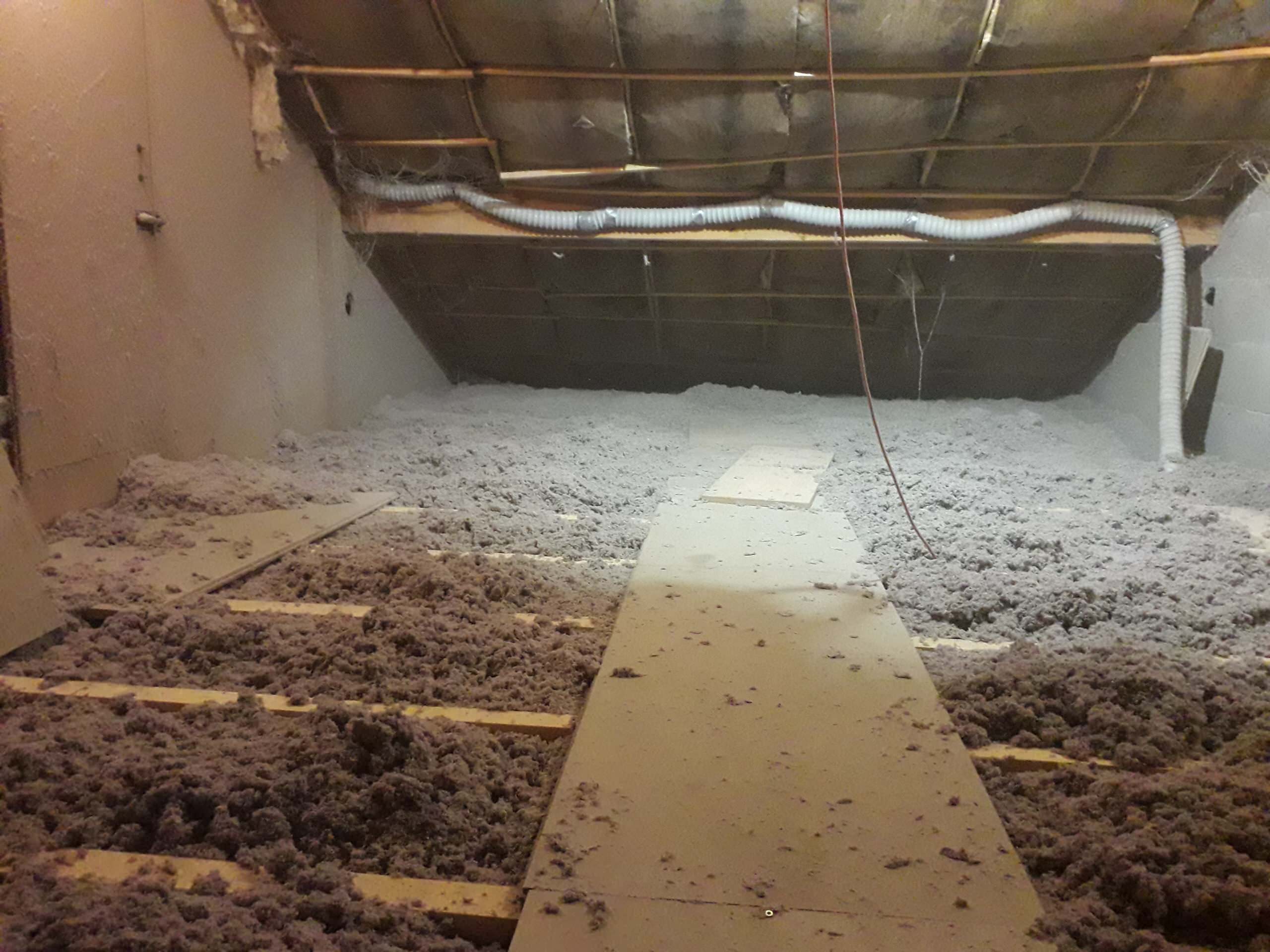 La ouate de cellulose en vrac, projetée dans les combles, est le premier isolant biosourcé en volume