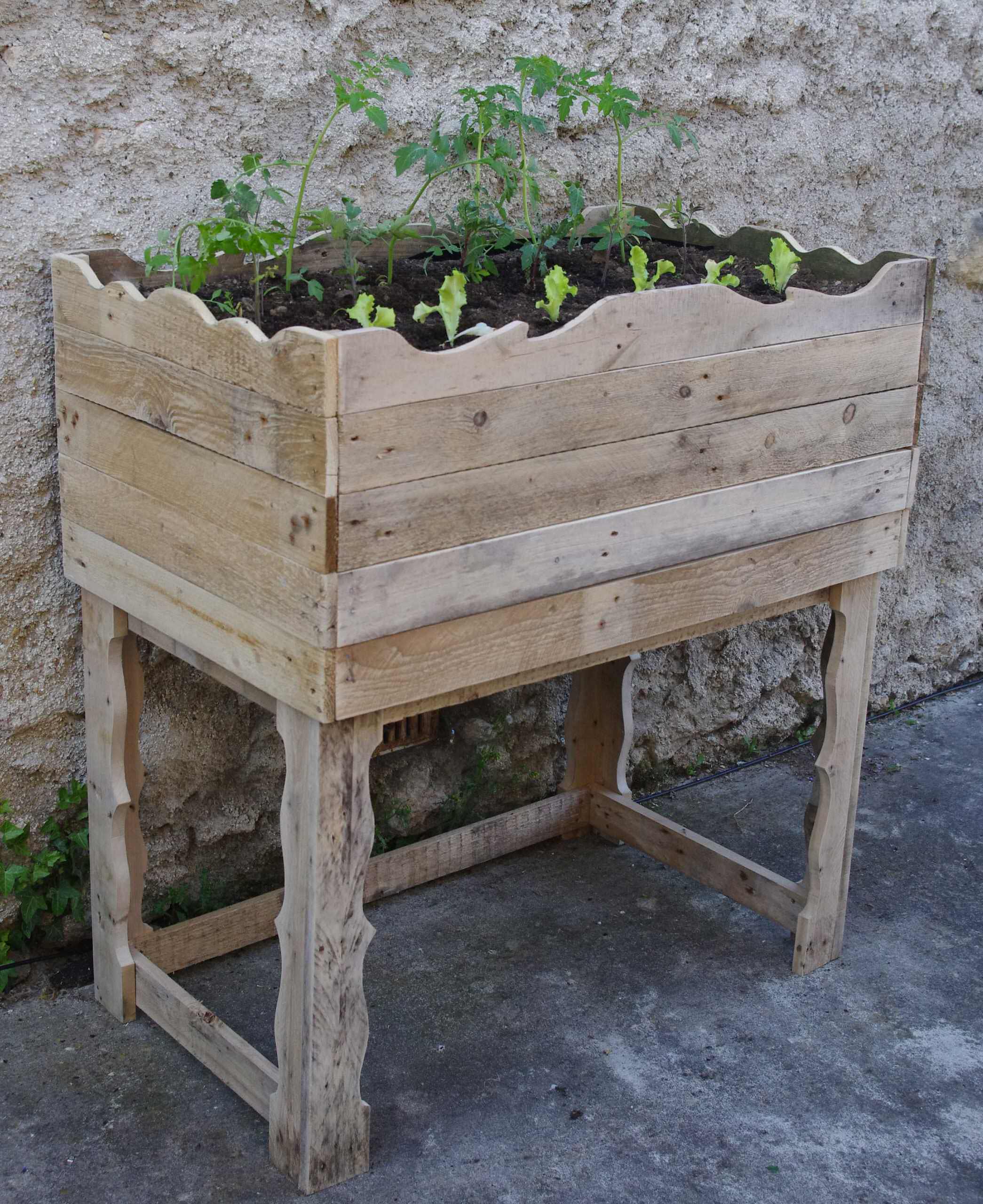 L’avantage dans la création d’une telle jardinière est sa capacité à proposer un bout de jardin accessible aux personnes à mobilité réduite. Il vous suffit de récupérer les lattes de votre palette et de les assembler entre elles. Le pied peut quant à lui être réalisé avec l’ensemble semelle/dés, pour plus de stabilité.