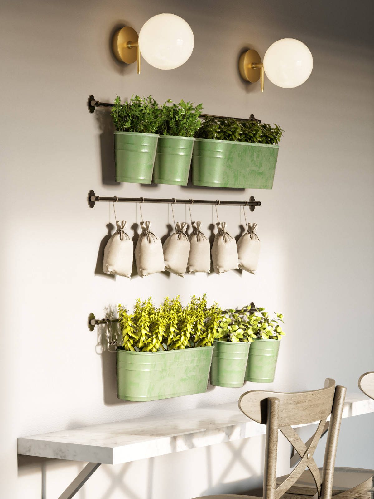 Alignées sur un mur ou intégrées dans une composition avec des luminaires ou autres accessoires, elles apportent une touche de nature à votre intérieur, en toute simplicité. Pour cela, vous pouvez utiliser des barres de rangement de cuisine ou des matériaux récup’, comme de vieux tuyaux ou du bois flotté.