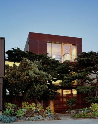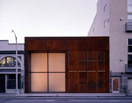 Cette maison de ville, conçue par Jim Jennings, adopte une façade en acier Corten qui lui donne un style très industriel. De larges baies translucides et des panneaux d’acier perforés permettent à la lumière de pénétrer à l’intérieur de la maison. Située dans le quartier de South of Market à San Francisco, qui accueille les nombreuses start-up et compagnies de haute technologie de la ville, cette maison et le design si particulier de ses plaques perforées renvoient directement à l’univers de la bulle Internet. Des graffitis incessants sur la façade ont cependant poussé l’architecte à changer l’acier Corten pour de l’acier inoxydable. Inutile de préciser combien il peut s’avérer difficile, pour ne pas dire impossible, d’enlever de la peinture à la bombe sur une couche de rouille.