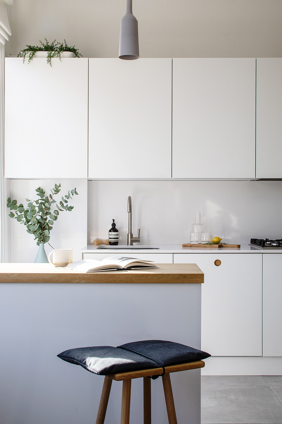 Bien entendu, cela ne signifie pas que votre cuisine doit être froide et clinique. Vous pouvez encore ajouter de l’intérêt en choisissant simplement quelques jolis objets à exposer sur vos plans de travail. Dans cette cuisine de Crafted Cabinetry, par exemple, quelques objets choisis, comme le simple vase d’eucalyptus, donnent du caractère à l’espace sans l’encombrer.