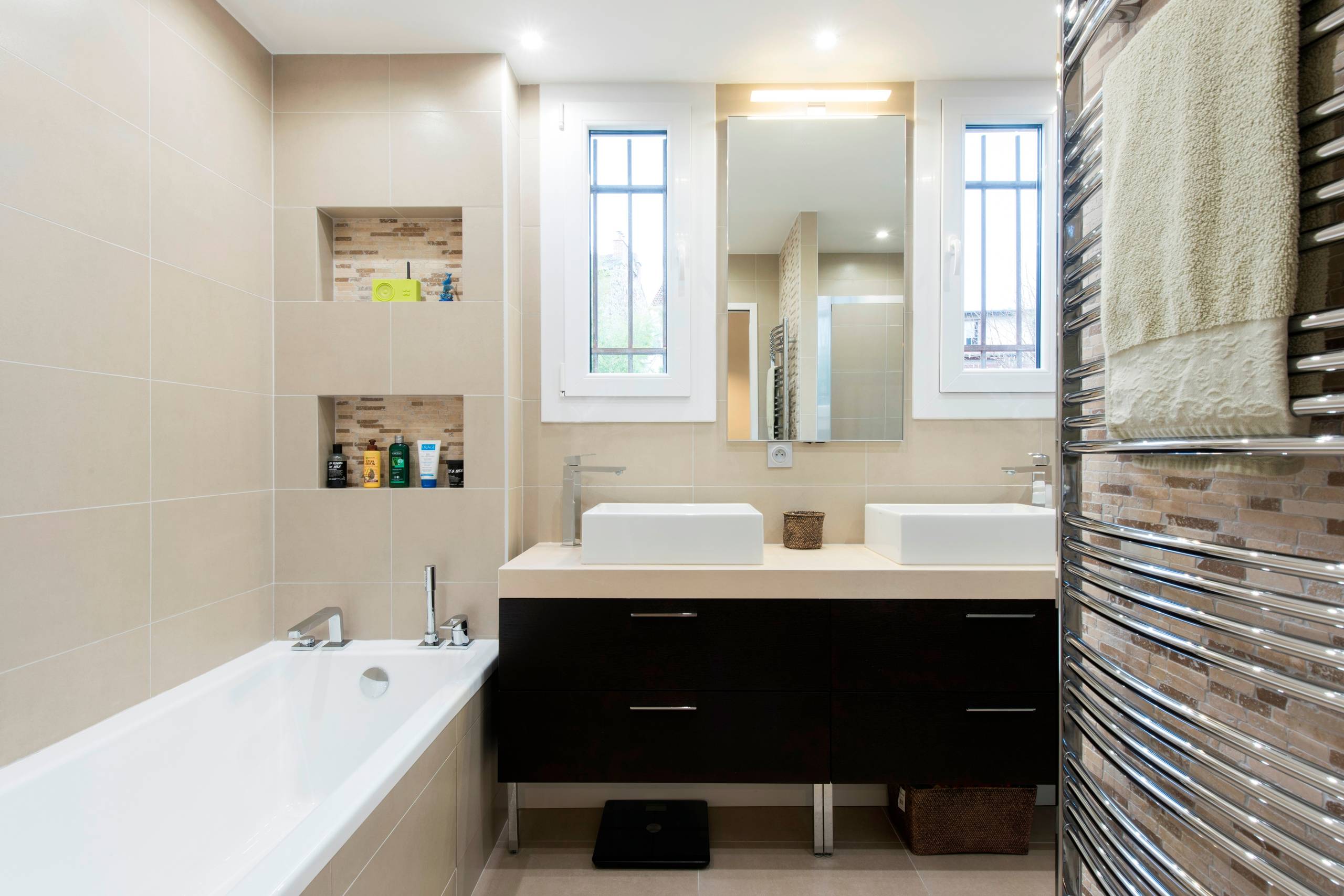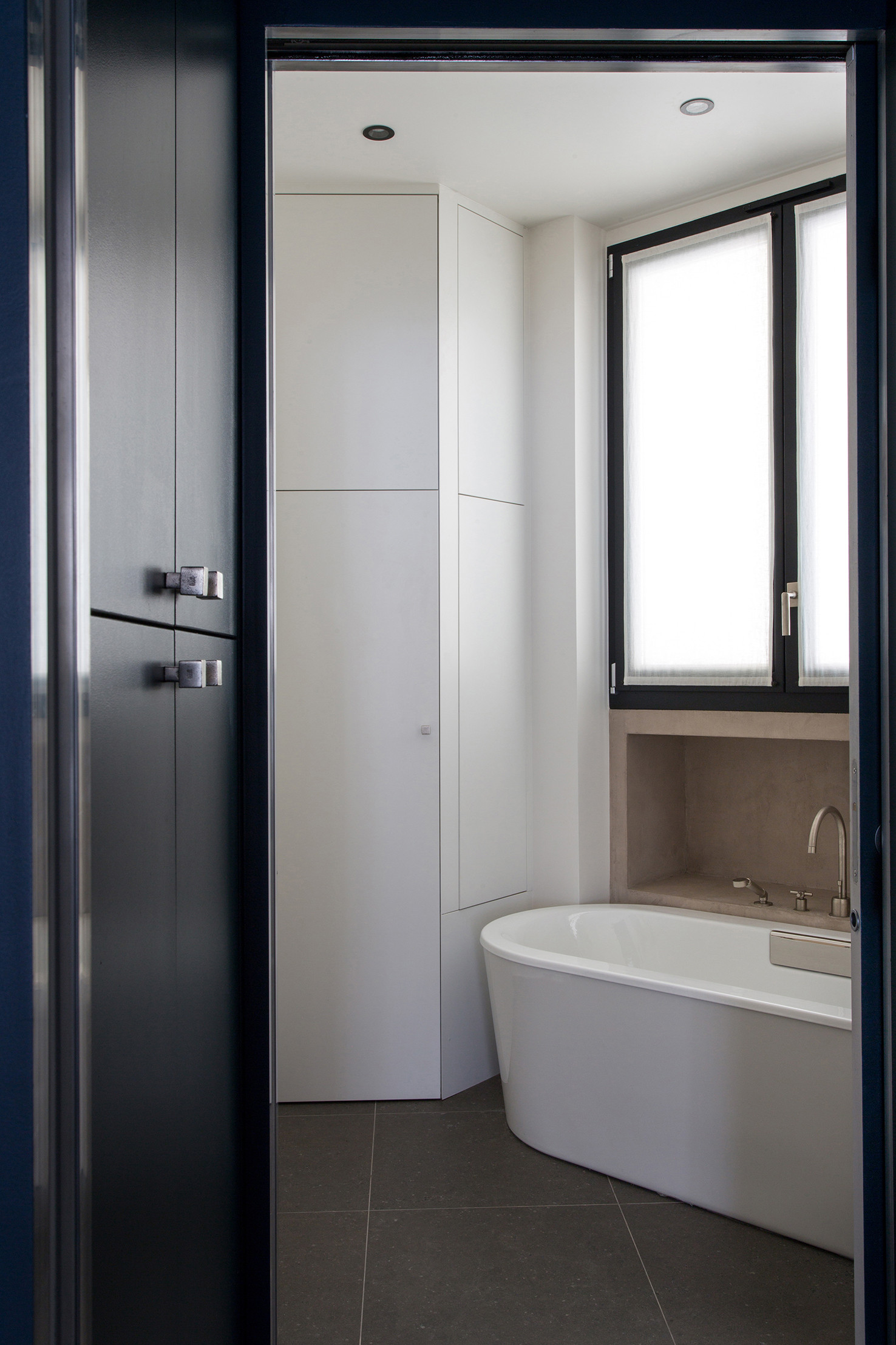 Pour. « Même si la baignoire prend toujours plus d’espace qu’une petite douche, on arrive toujours à trouver assez de place pour la caser dans une petite salle de bains, si cela correspond au souhait du client », estime l’architecte Stéphanie Bertina Minel, se prononçant pour les baignoires dans les petites salles de bains. « Une baignoire standard mesure 1,70 mètre de long. Si on place le meuble vasque perpendiculairement à la baignoire, cela laisse un espace suffisant devant et la salle de bains reste compacte. Souvent je profite de la mise en place d’une baignoire pour créer des niches de rangement, qui permettent parfois de cacher les canalisations », poursuit-elle.