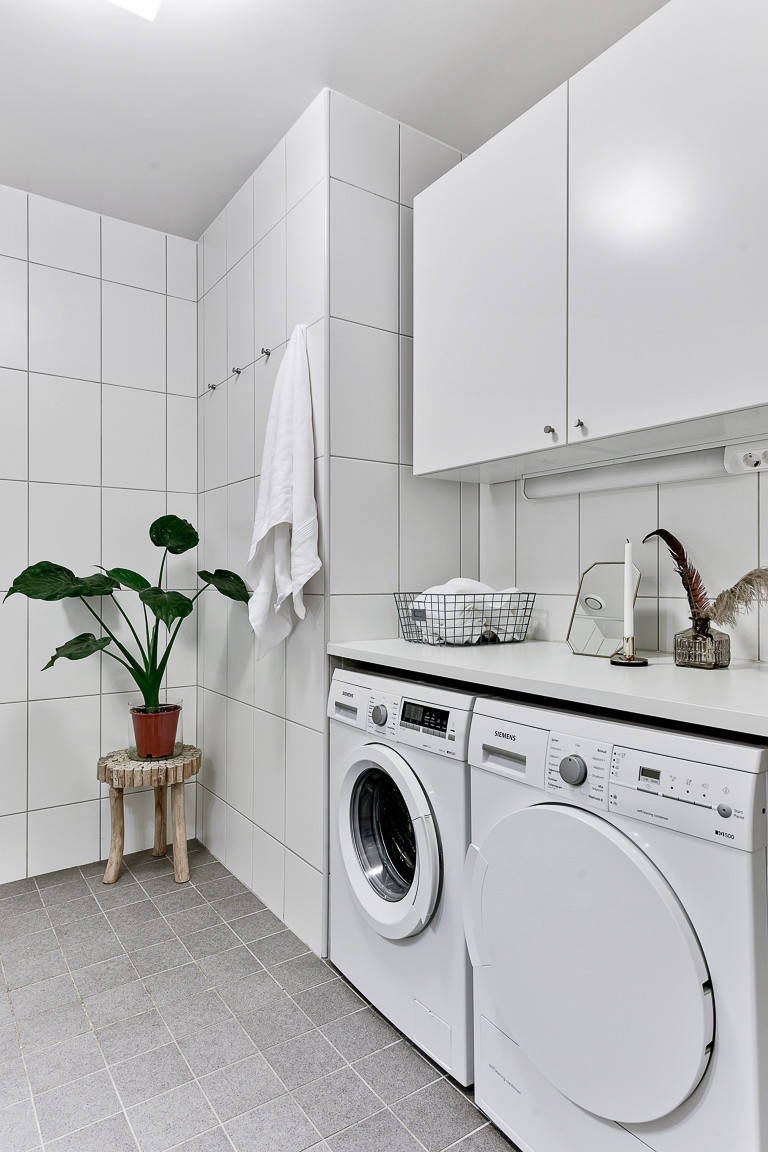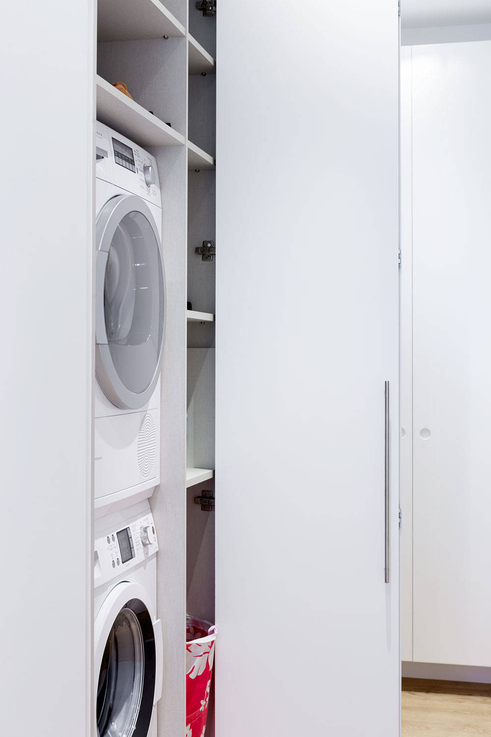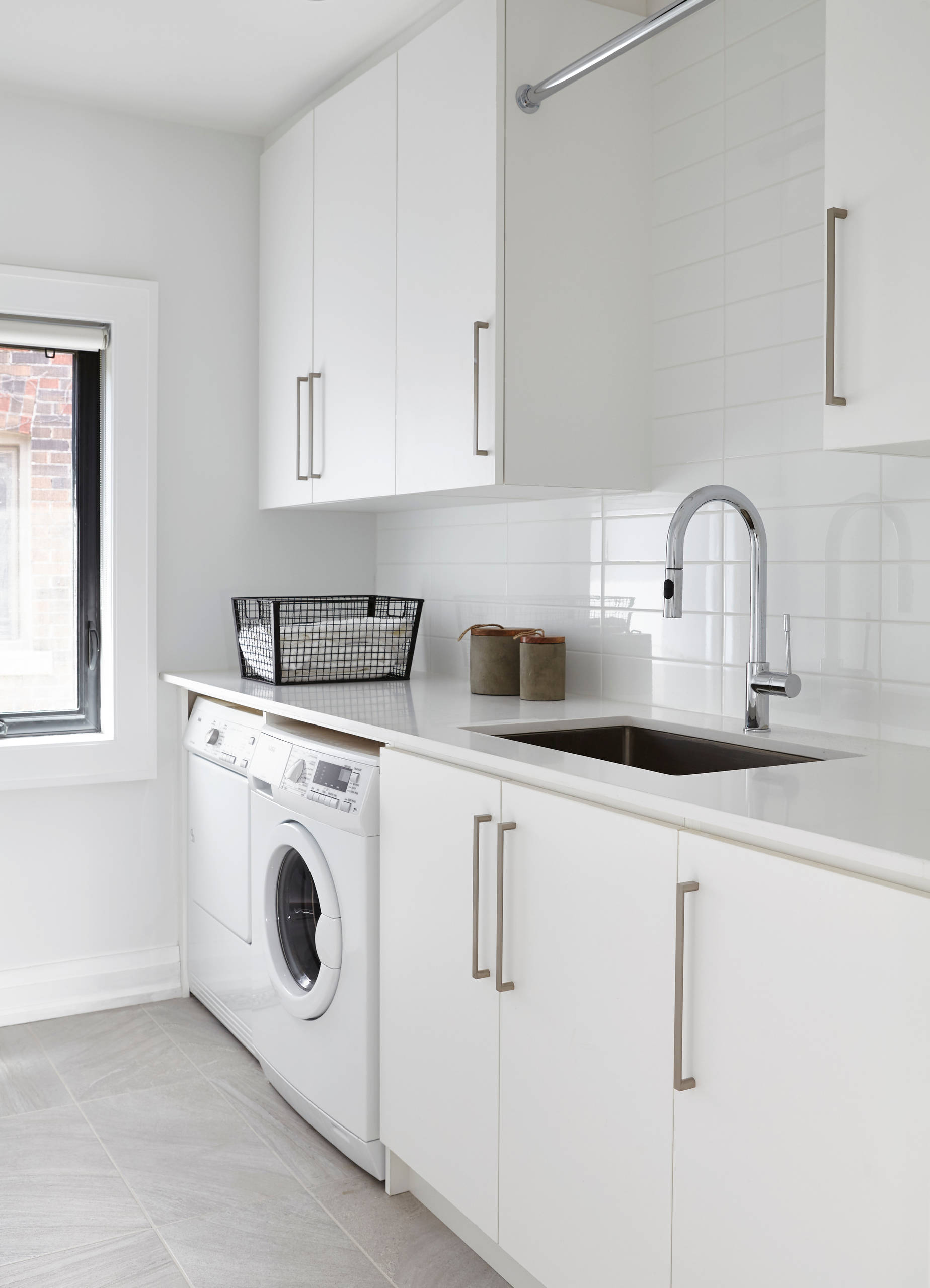 10. Intégrés dans une menuiserie sur mesure pour optimiser l’espace dans le coin buanderie.