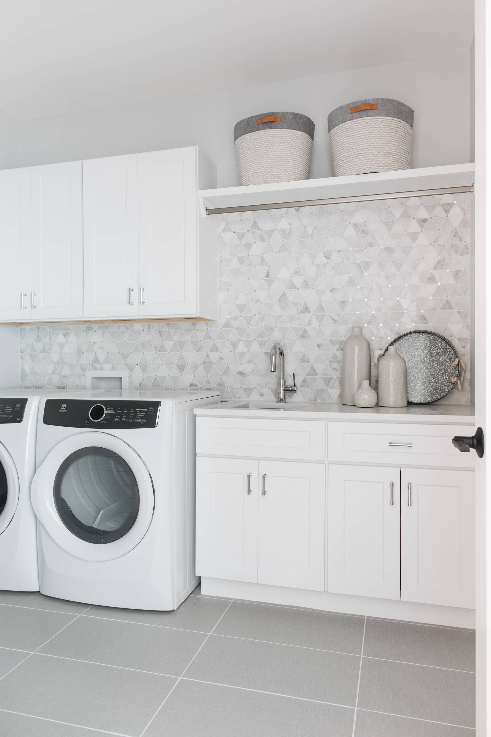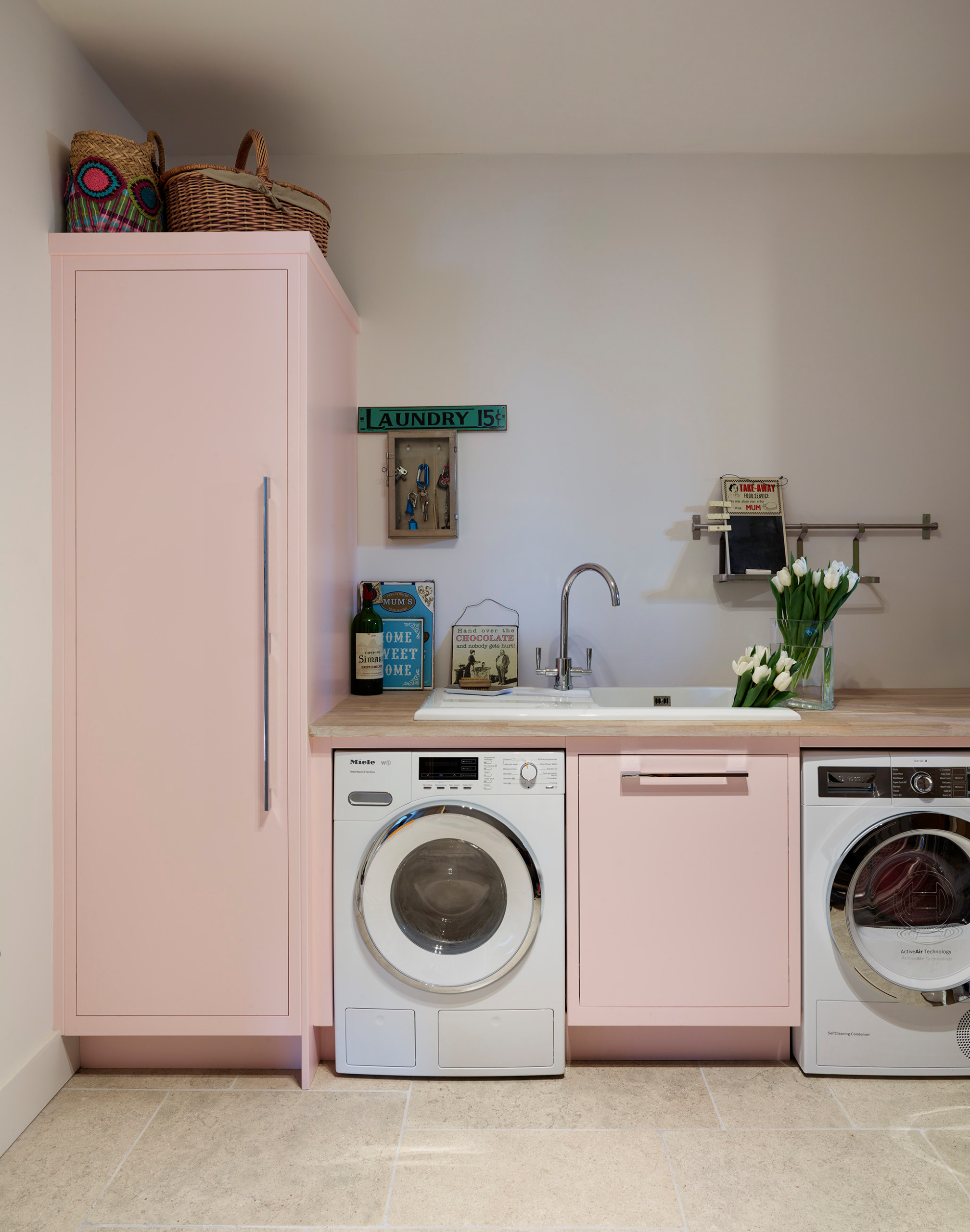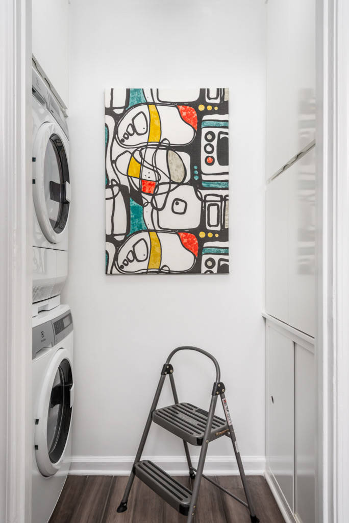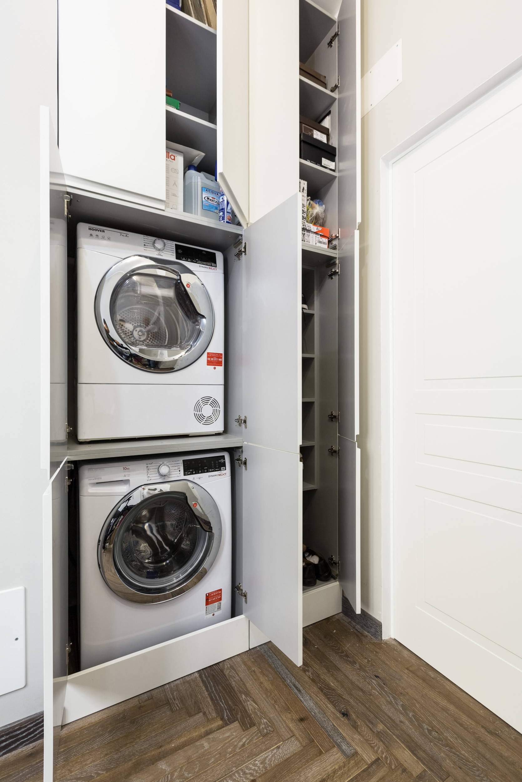 10. Intégrés dans une menuiserie sur mesure pour optimiser l’espace dans le coin buanderie.