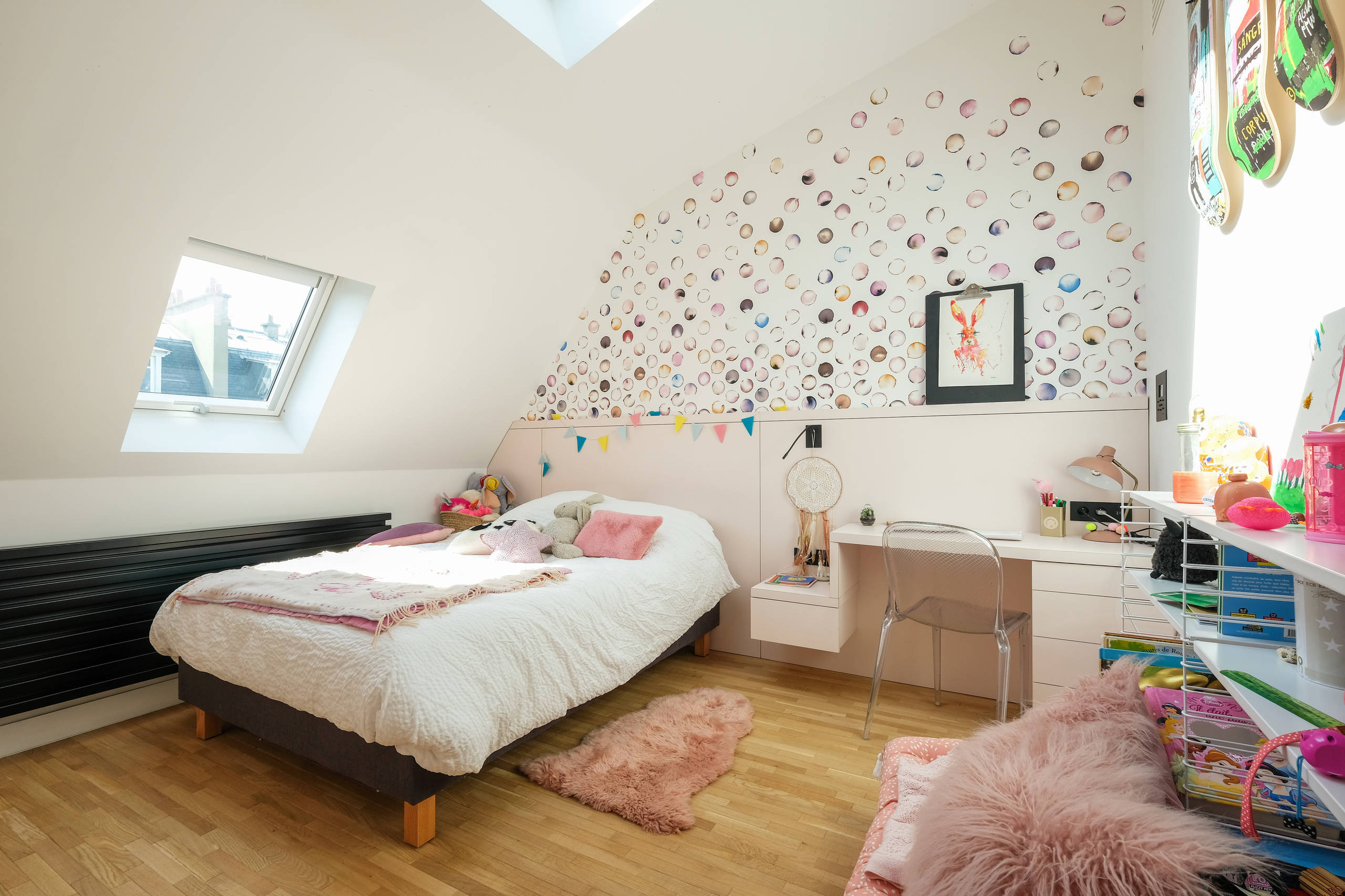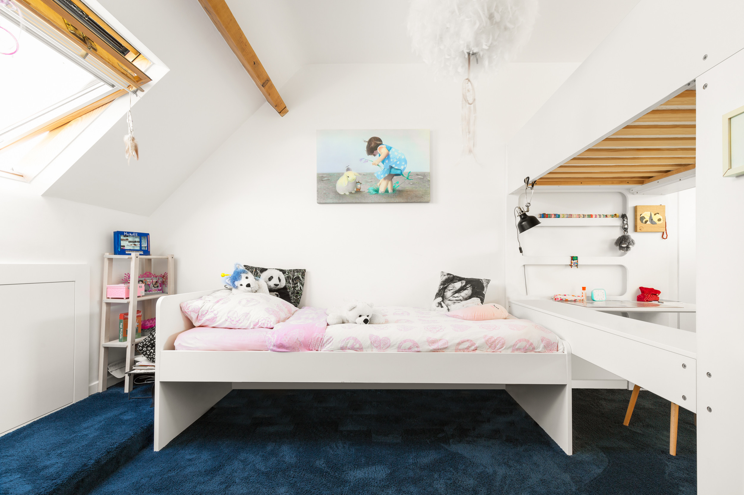 4. Optimisation de l’espace avec un bureau sous les combles, imaginé par Les Intérieurs Claire.