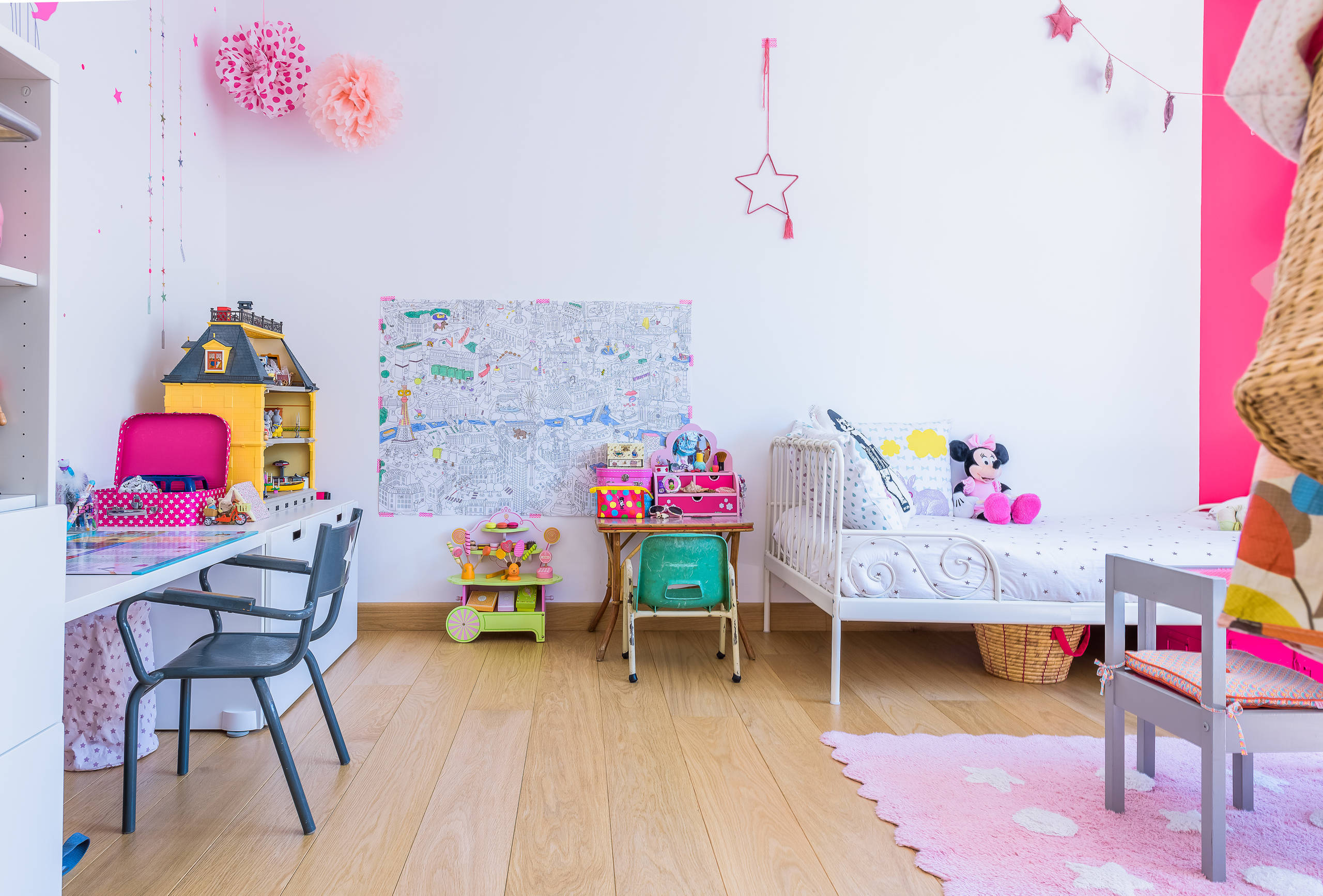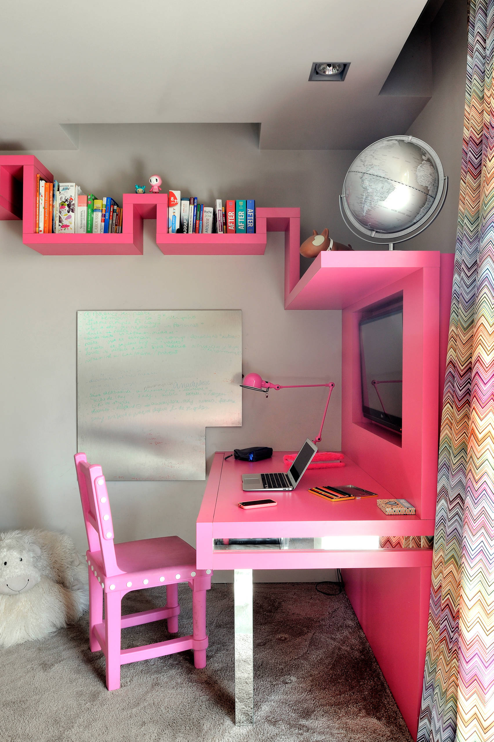 51. Du rose pour réveiller la pièce et un bureau géométrique pour lui donner du pep’s, par Olivier Gay Architecture & Design.