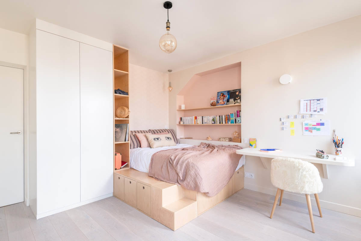 17. Un bureau sous un lit mezzanine pour utiliser l’espace dans sa hauteur, par l’Atelier Germain.