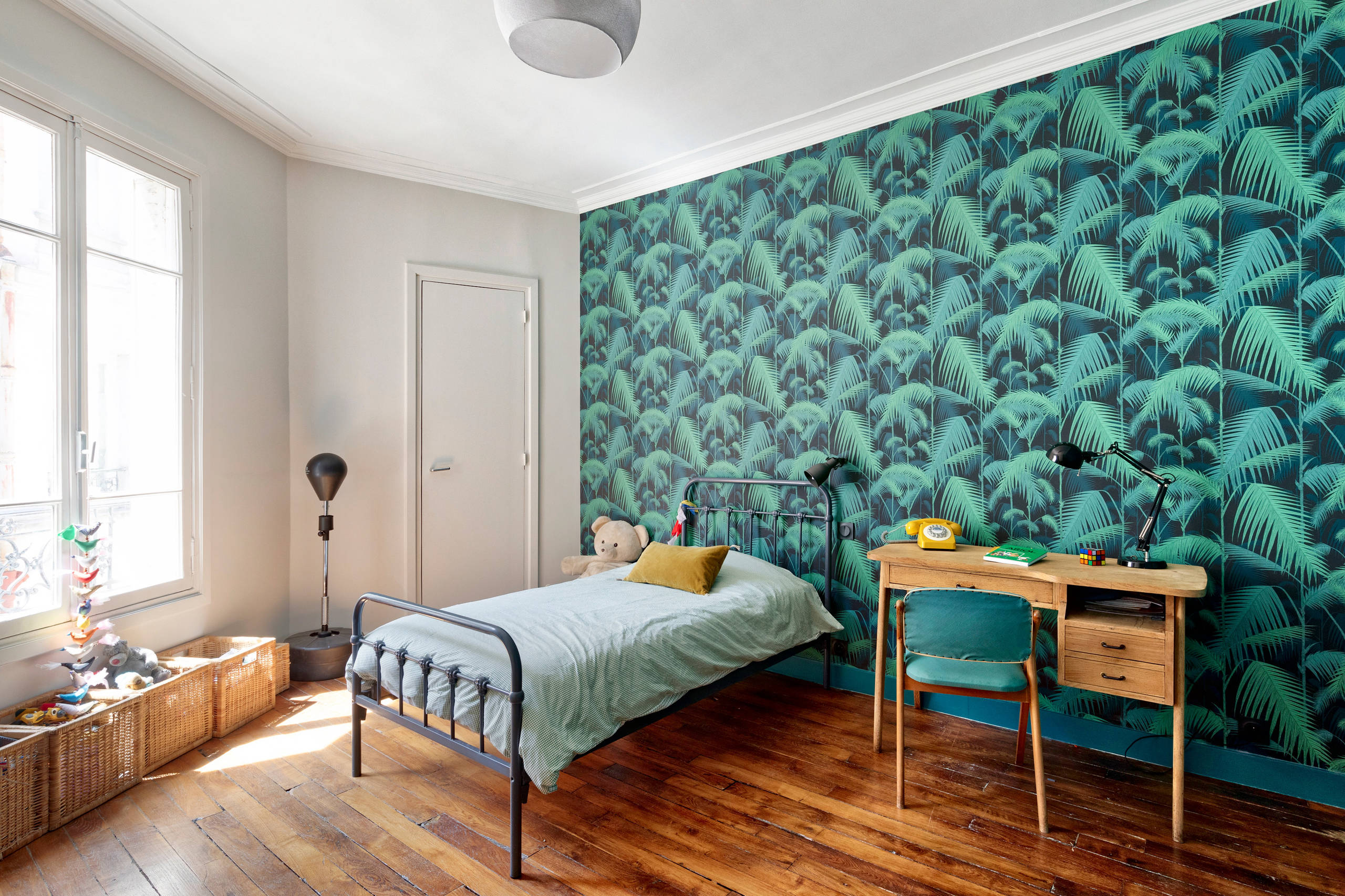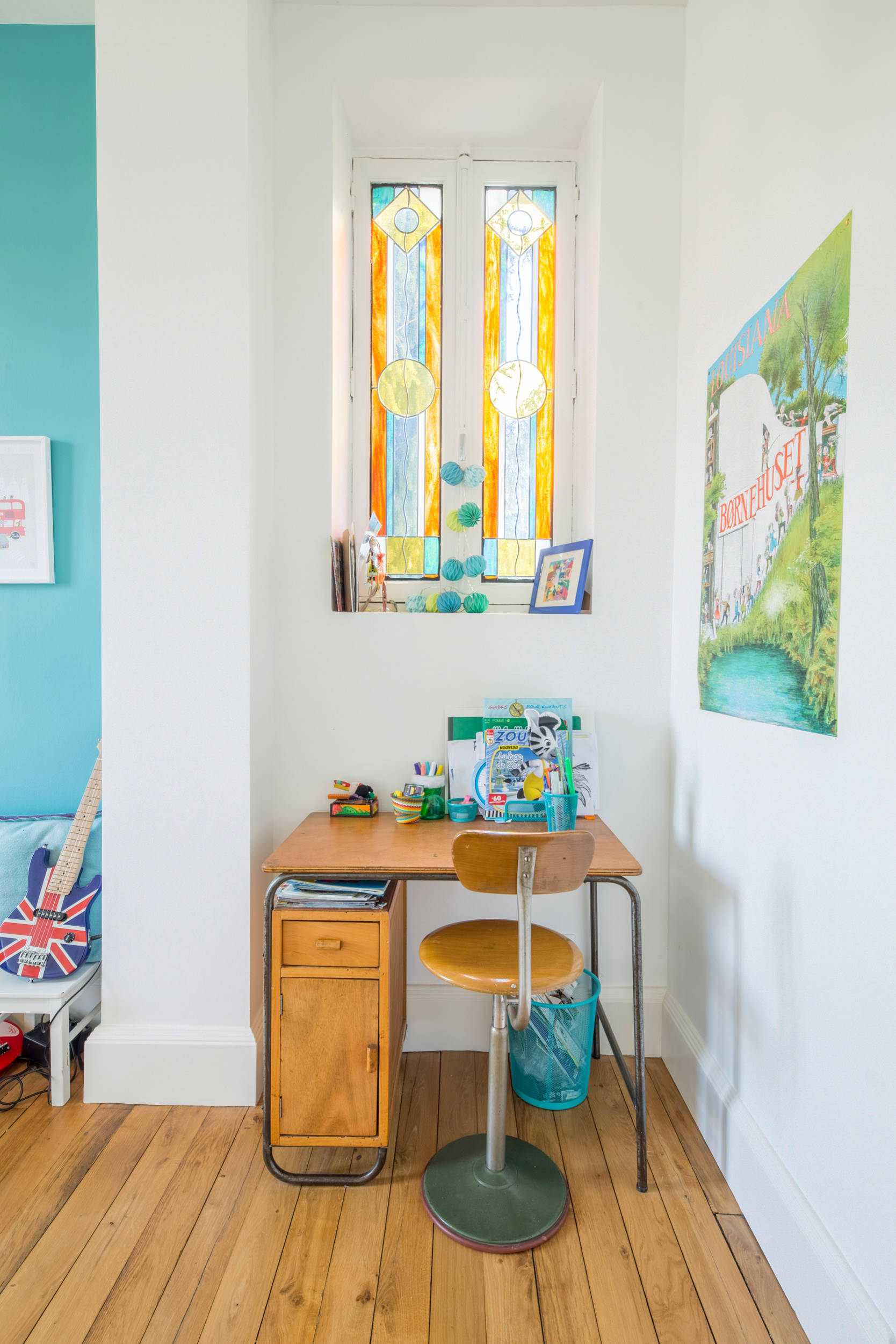 14. Un bureau pratique dans une chambre colorée, par Delphine Guyart Design.
