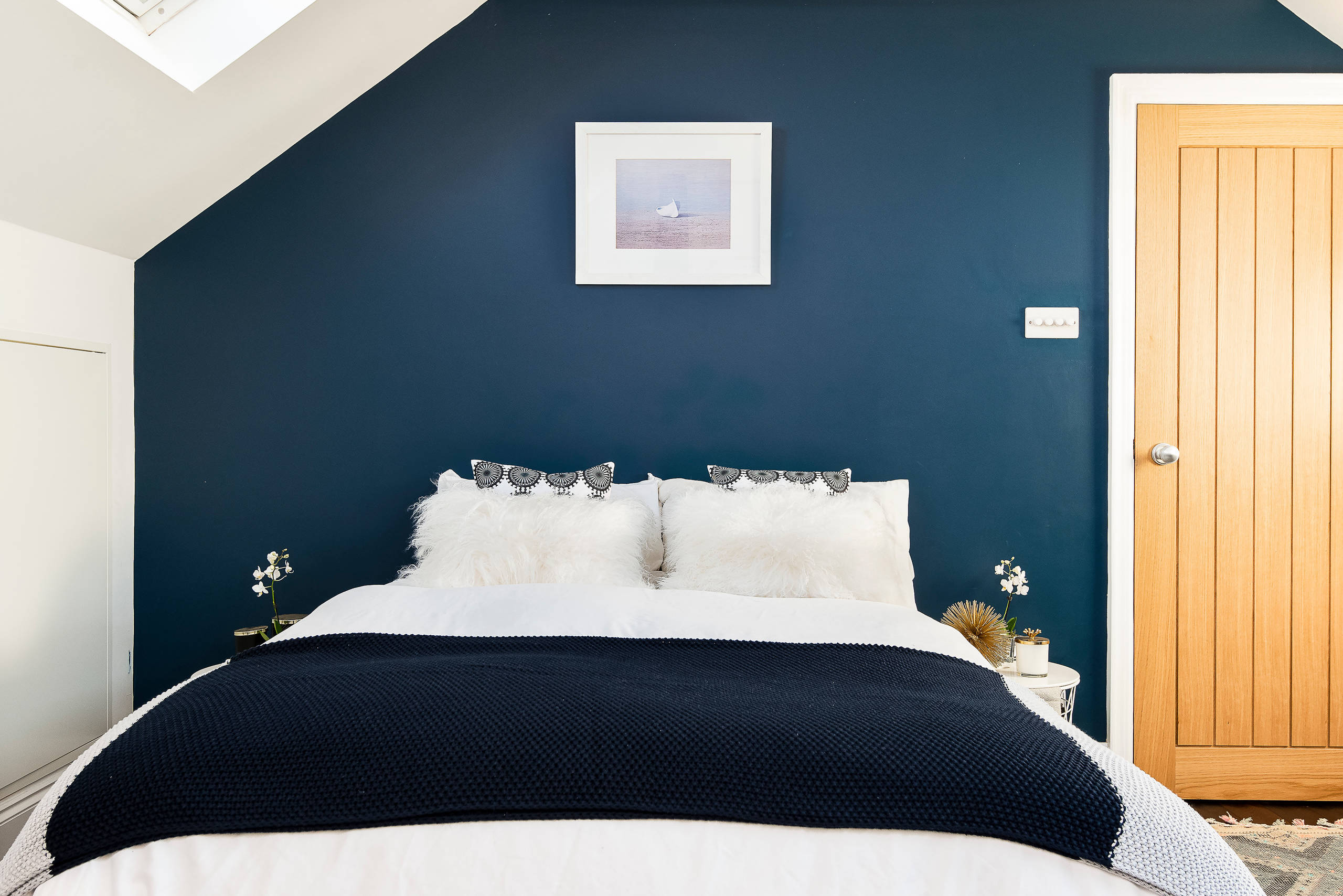 49. Des murs et du linge de lit bleus pour profiter des vertus relaxantes et oniriques de la couleur.