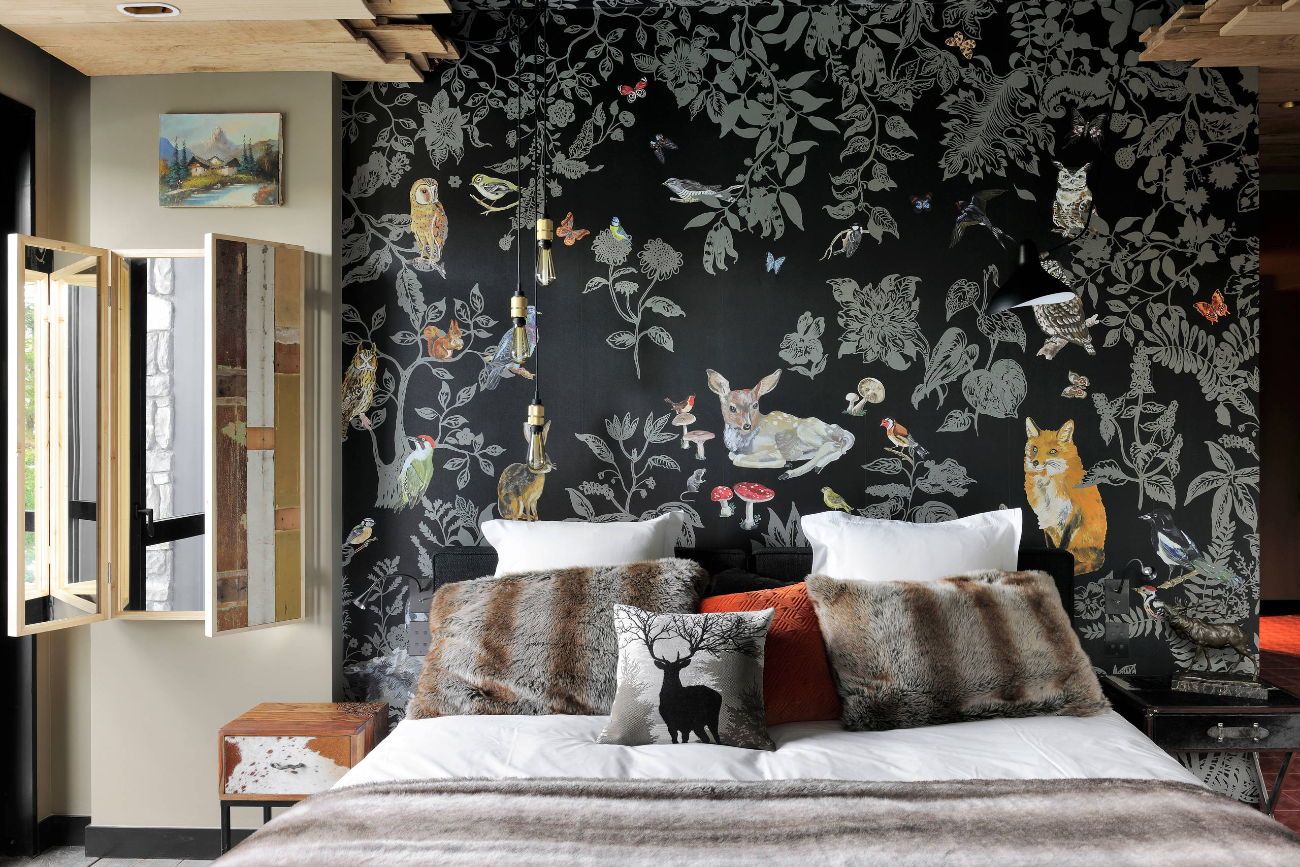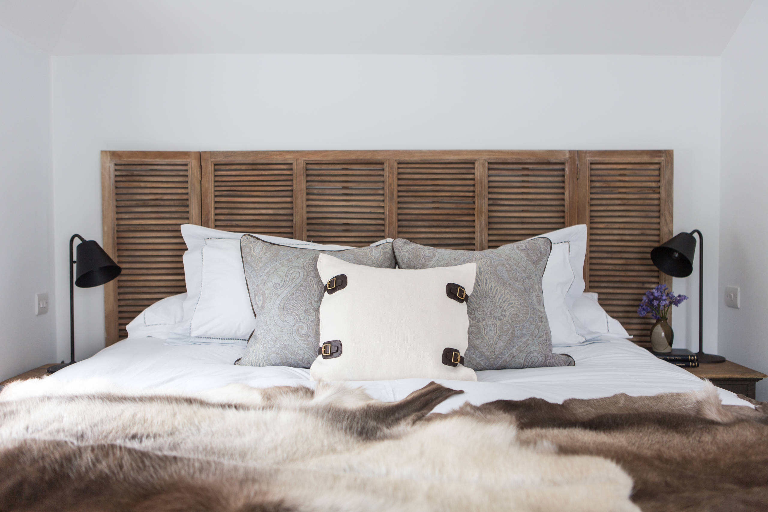 11. Des volets en tête de lit pour nous rappeler qu’on est en sécurité et protégé, dans un lit cosy avec sa fausse peau de bête.