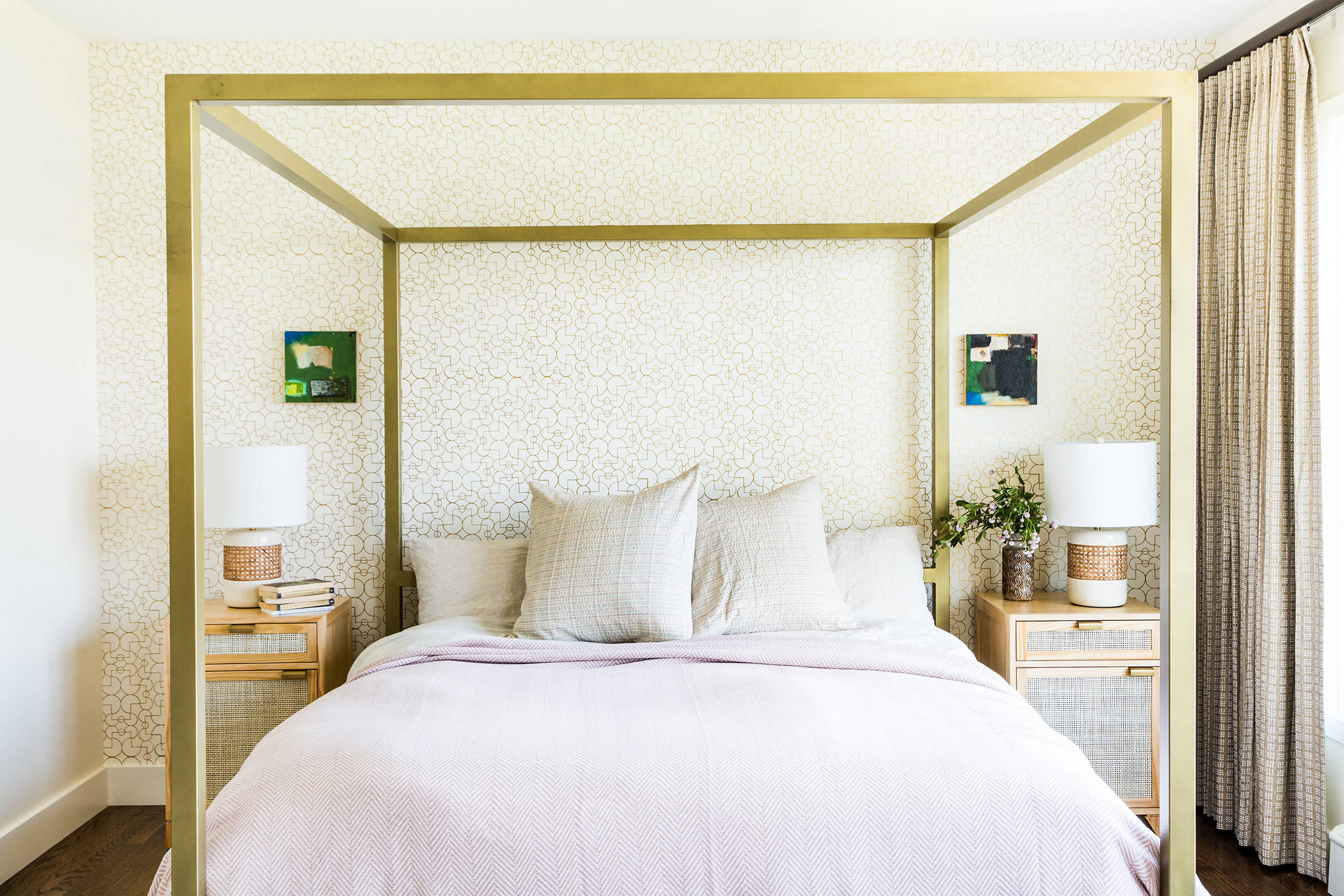 7. Un lit comme pièce maîtresse d’une petite chambre dont les couleurs douces renforcent le côté cosy.