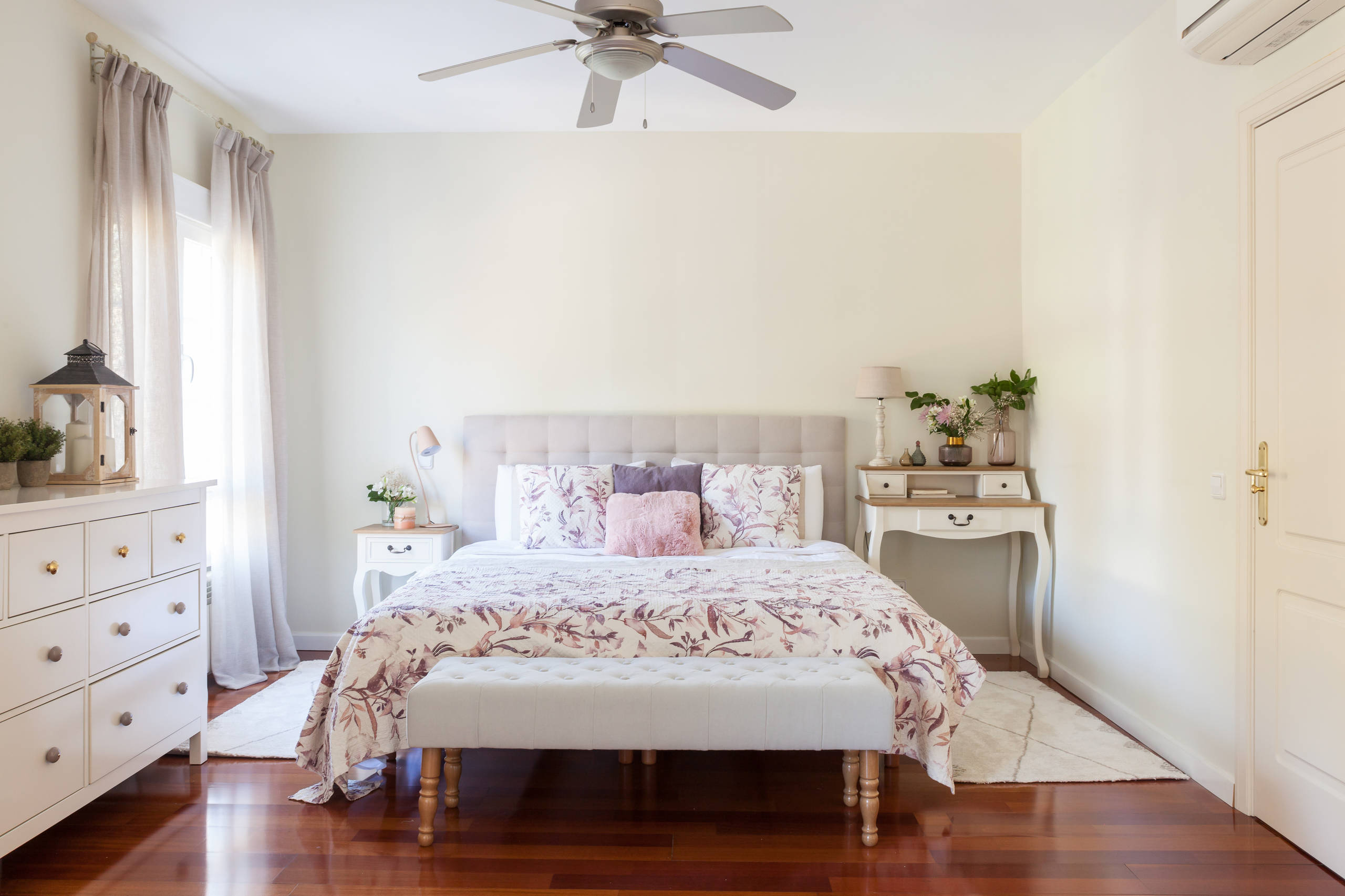 42. Un linge de lit fleuri et un mobilier classique pour une ambiance romantique des plus plaisantes.