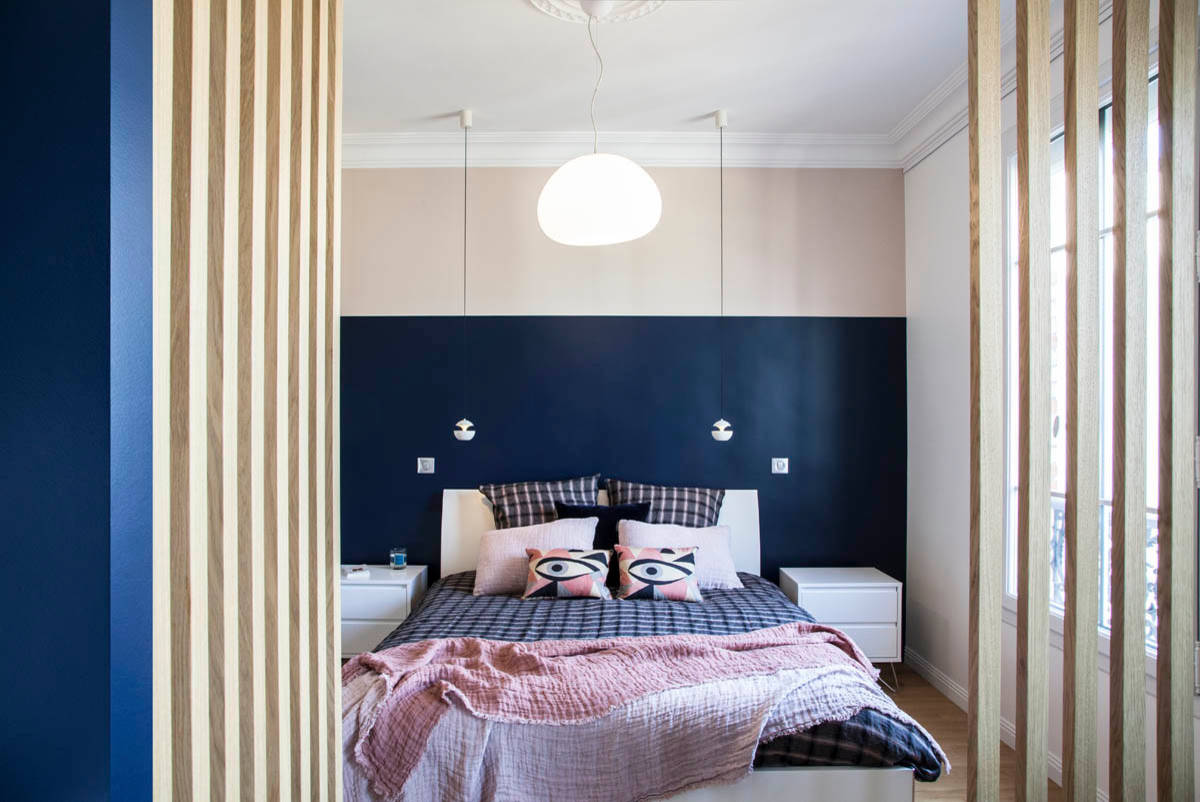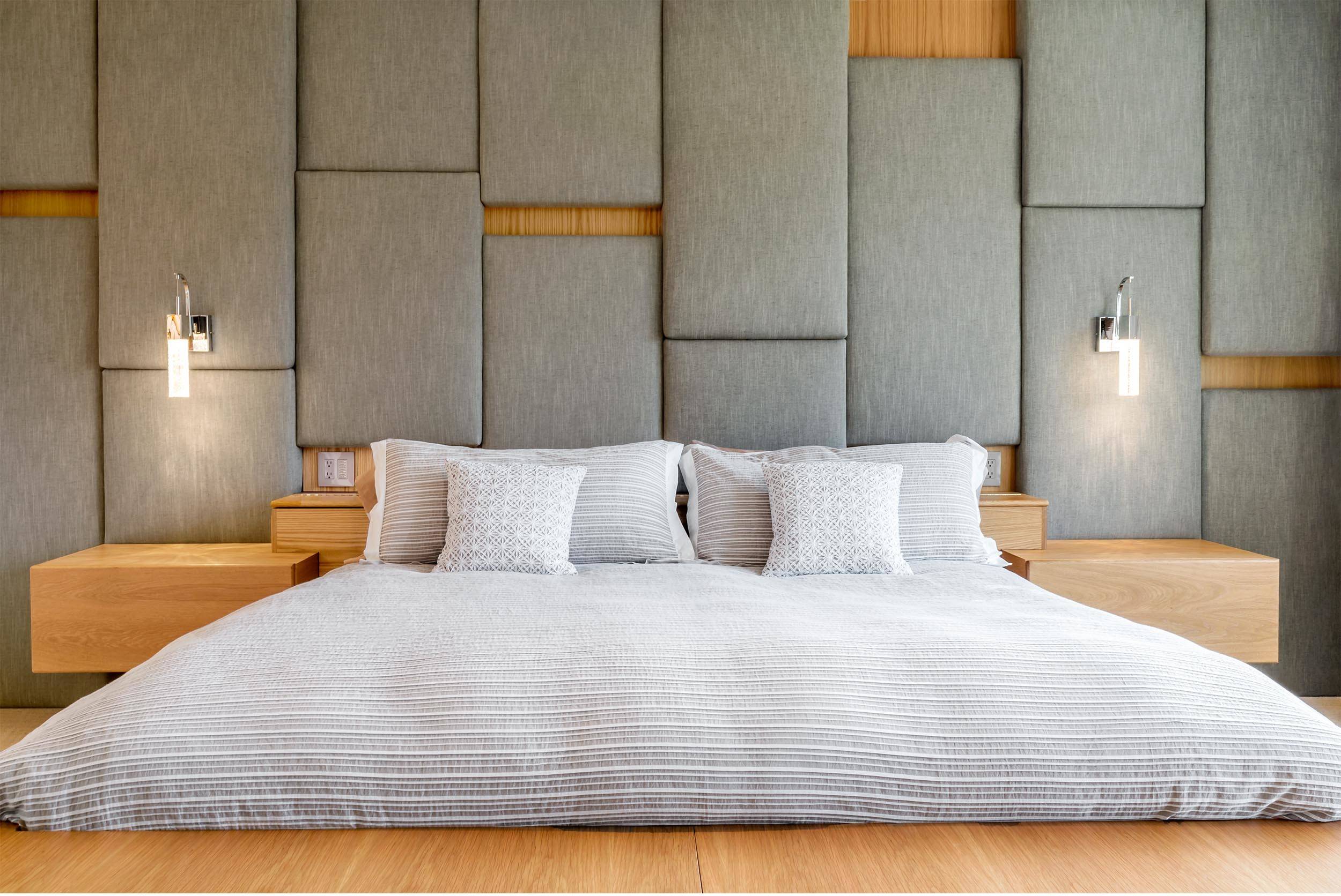 10. Une isolation phonique travaillée sur la tête de lit pour ne rien entendre des bruits de la ville qui s’éveille.
