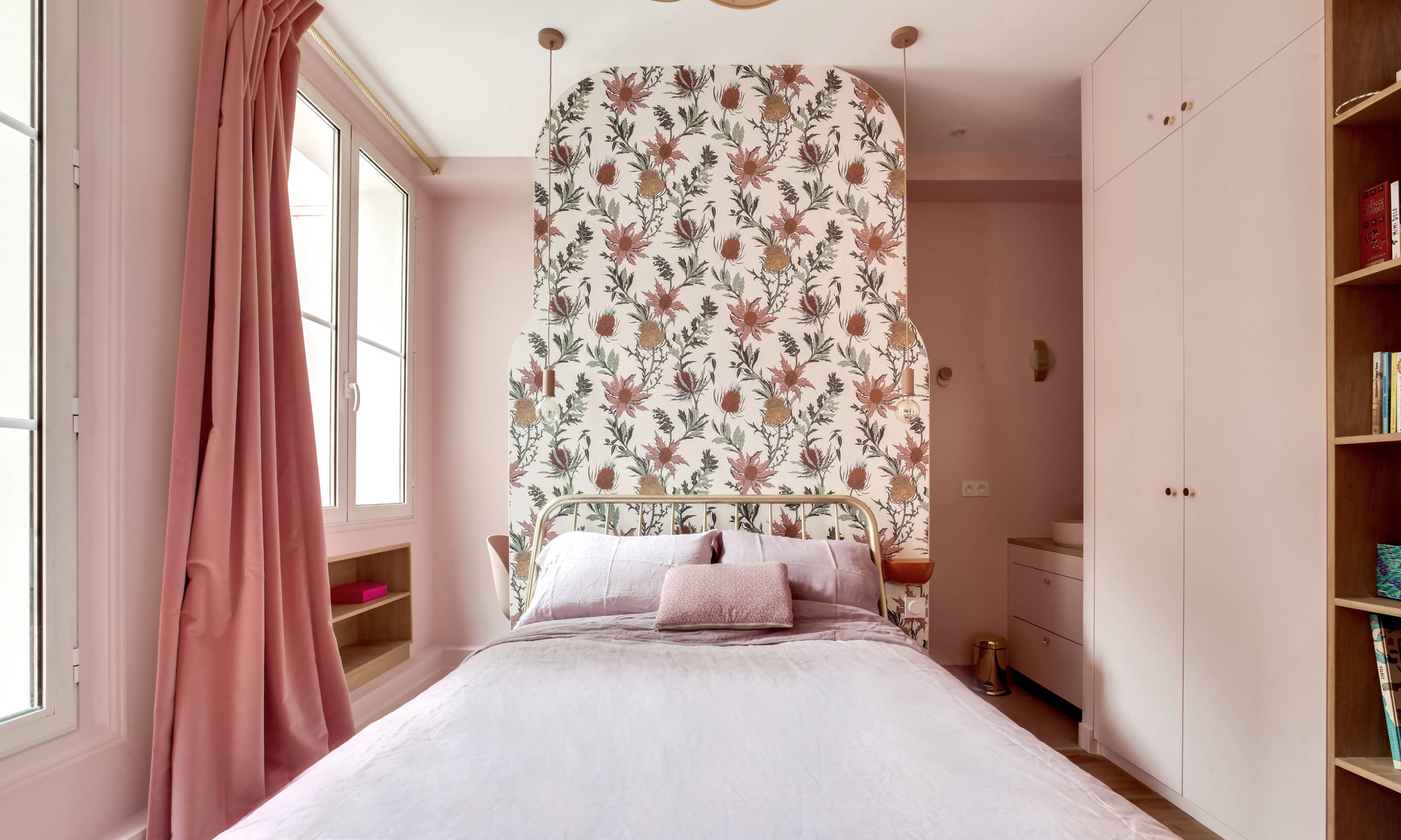 6. Un papier fleuri qui n’est pas sans donner un air champêtre à la pièce, comme une parenthèse à la campagne.