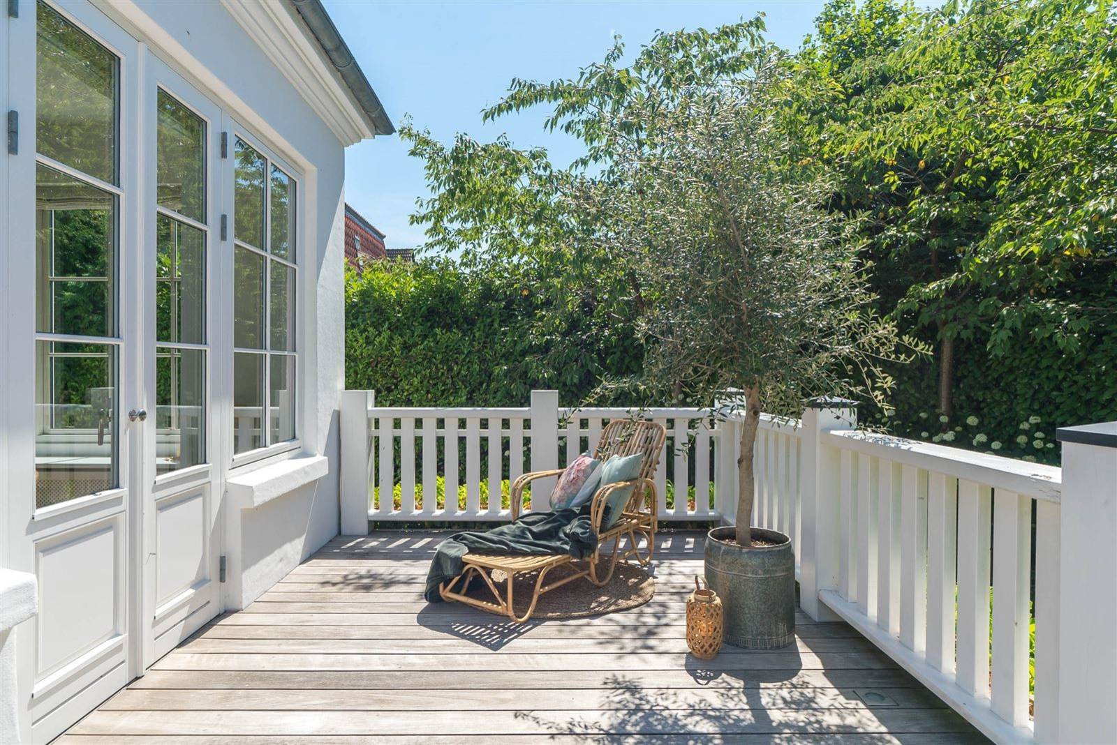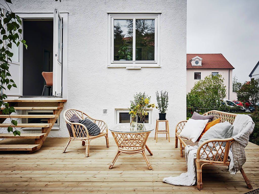 59. Simple avec son transat en rotin qui invite à la détente au Danemark.