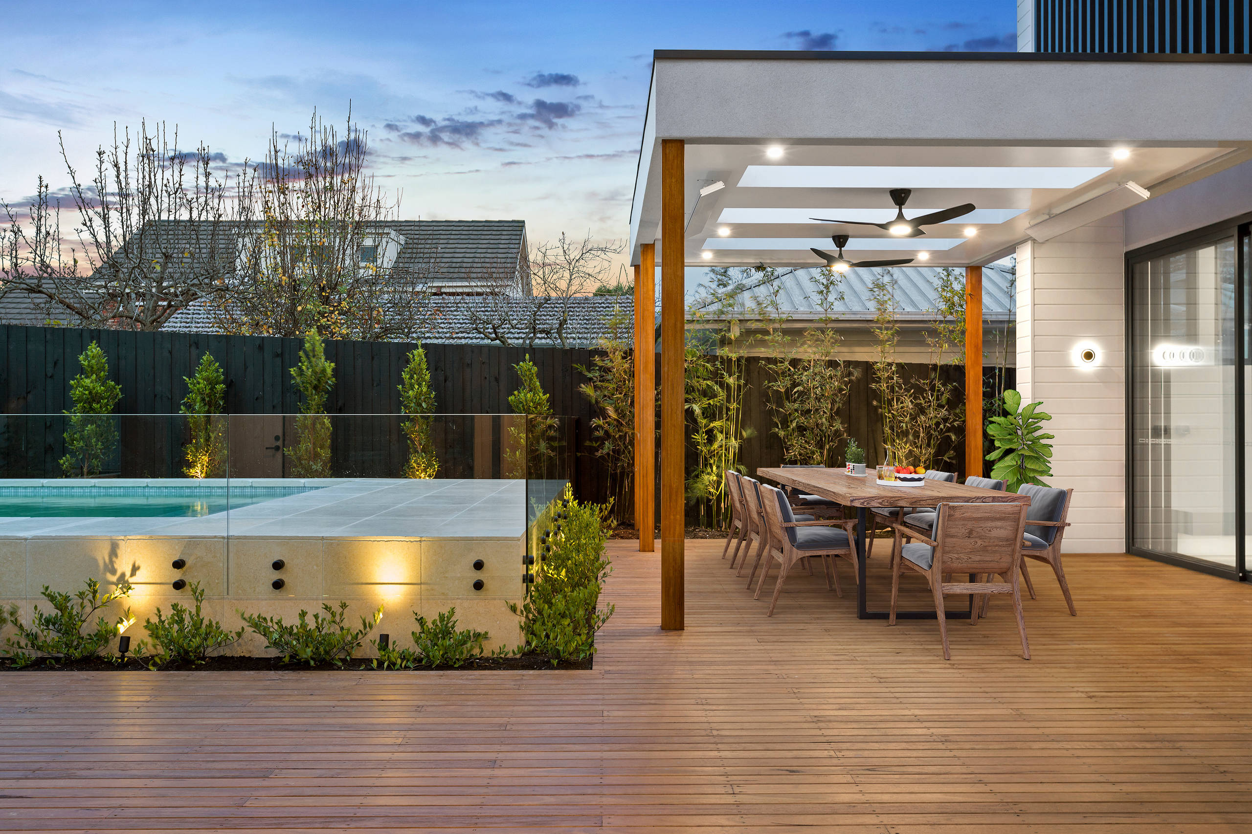 60. Design et contemporaine avec sa piscine surélevée et sa pergola, à Melbourne en Australie.
