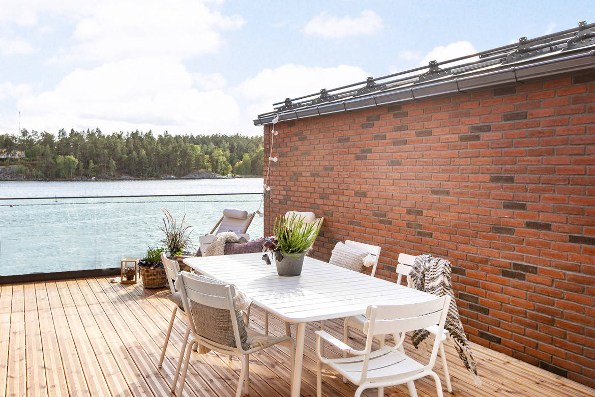 56. En toute simplicité avec des matériaux nobles, la vue sur le lac en seule décoration, en Suède.